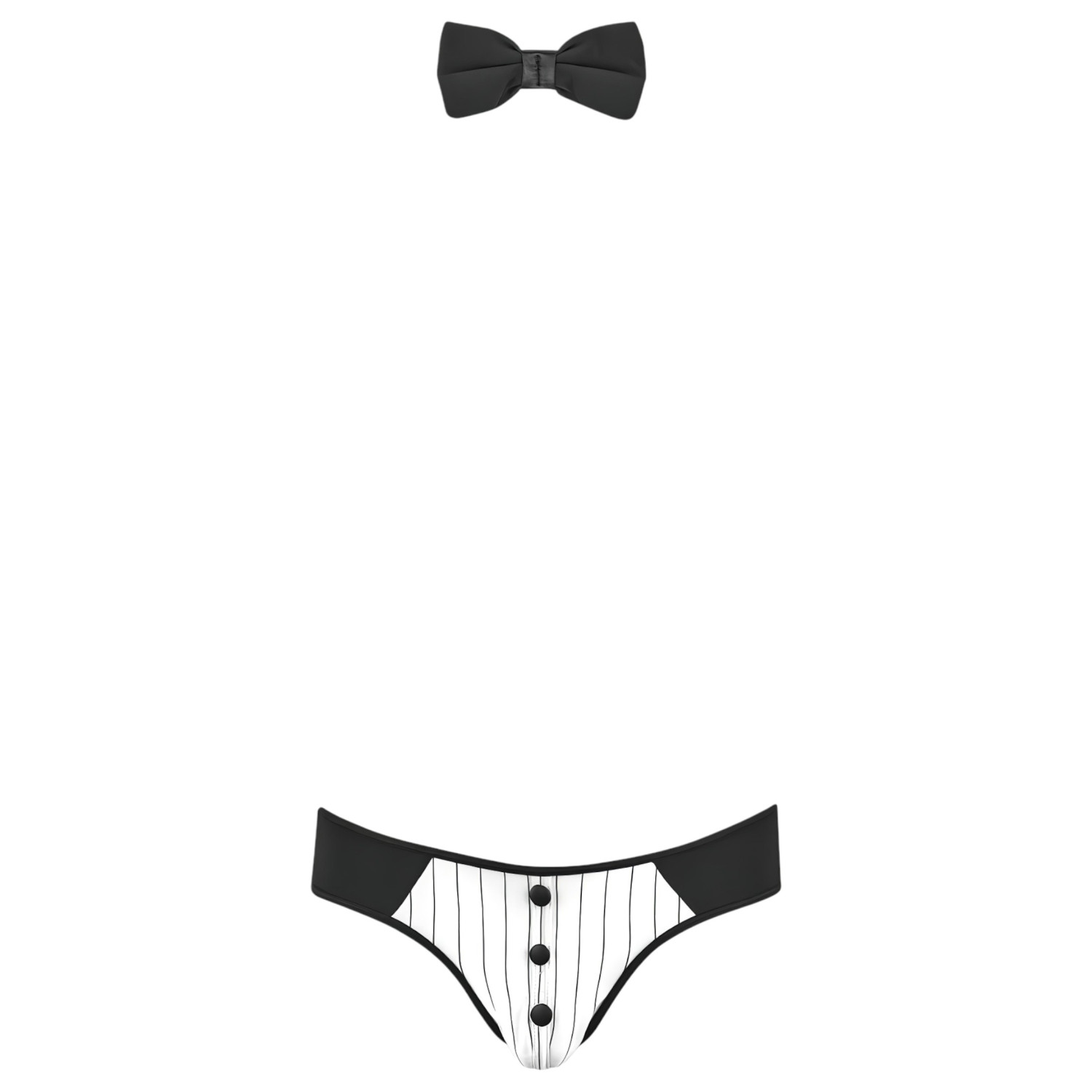 • 1 τεμάχιο ανδρικό εσώρουχο ανοιχτό πίσω, με μαύρο-λευκό ριγέ σχέδιο και μαύρα κουμπιά