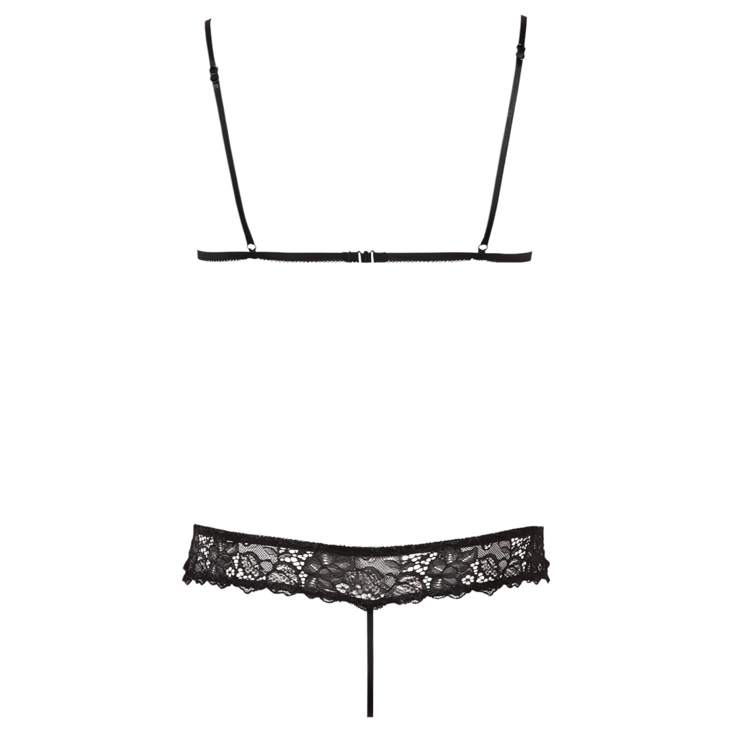 Το σετ δαντέλας με στρας είναι μια πραγματική ιδιαιτερότητα που αναδεικνύει τη θηλυκότητα και προσφέρει αυτοπεποίθηση. Το ανοιχτό κάτω μέρος και το εστιασμένο τμήμα του μπούστου είναι ταυτόχρονα τολμηρά και προκλητικά, ενώ το μαλακό, ελαστικό ύφασμα προσφέρει άνεση. Το λεπτομερής σχέδιο της δαντέλας ενισχύει την αίσθηση πολυτέλειας του σετ.