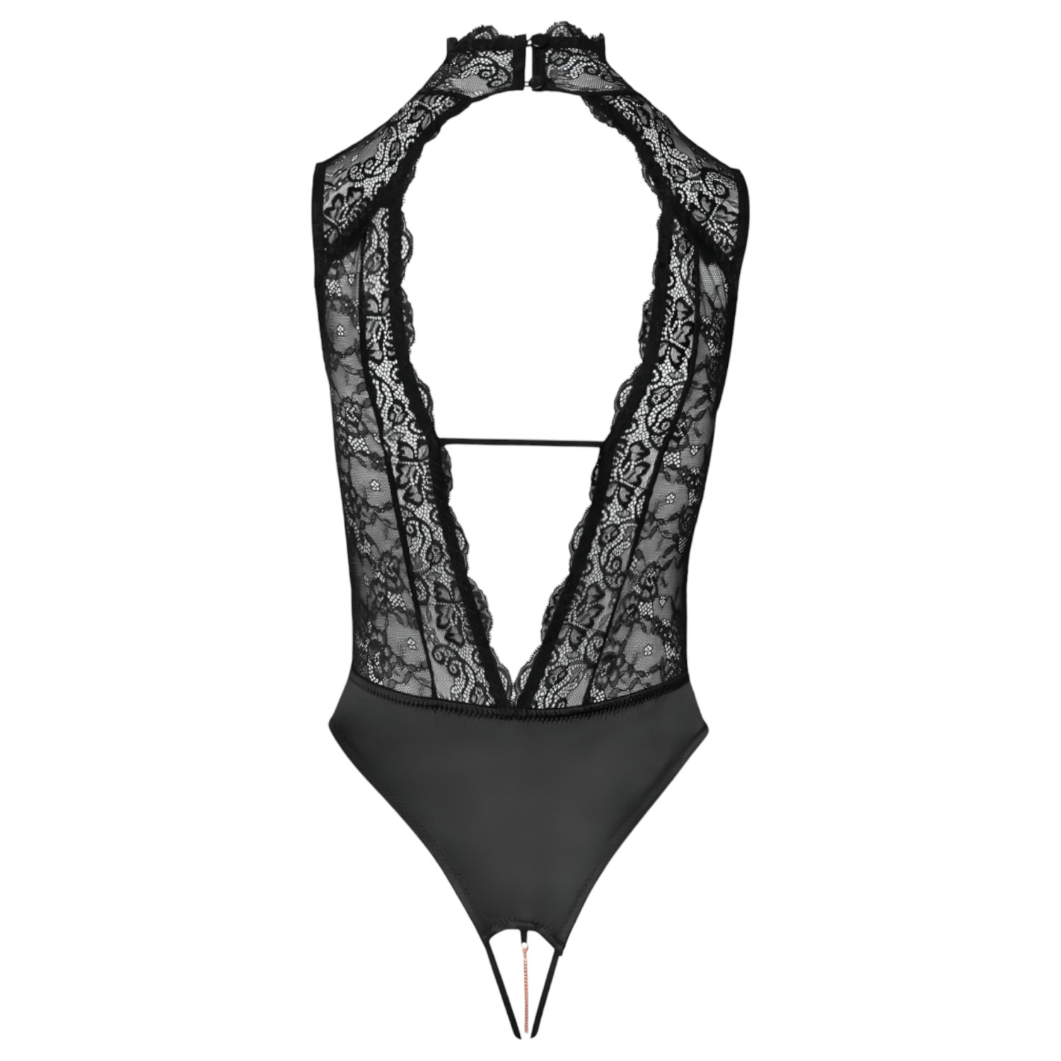 Κομψό και εκπληκτικά σαγηνευτικό, ταυτόχρονα άνετο, κορμάκι με όρθιο γιακά από απαλή δαντέλα, διακοσμητικές λεπτομέρειες με στρας – Abierta Fina - δαντελένιο, ανοιχτό κορμάκι με στρας
