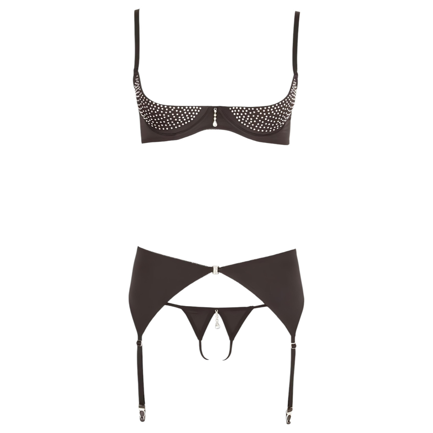 Abierta Fina - Σετ εσωρούχων με λαμπερά πετράδια (μαύρο) - 80C/M