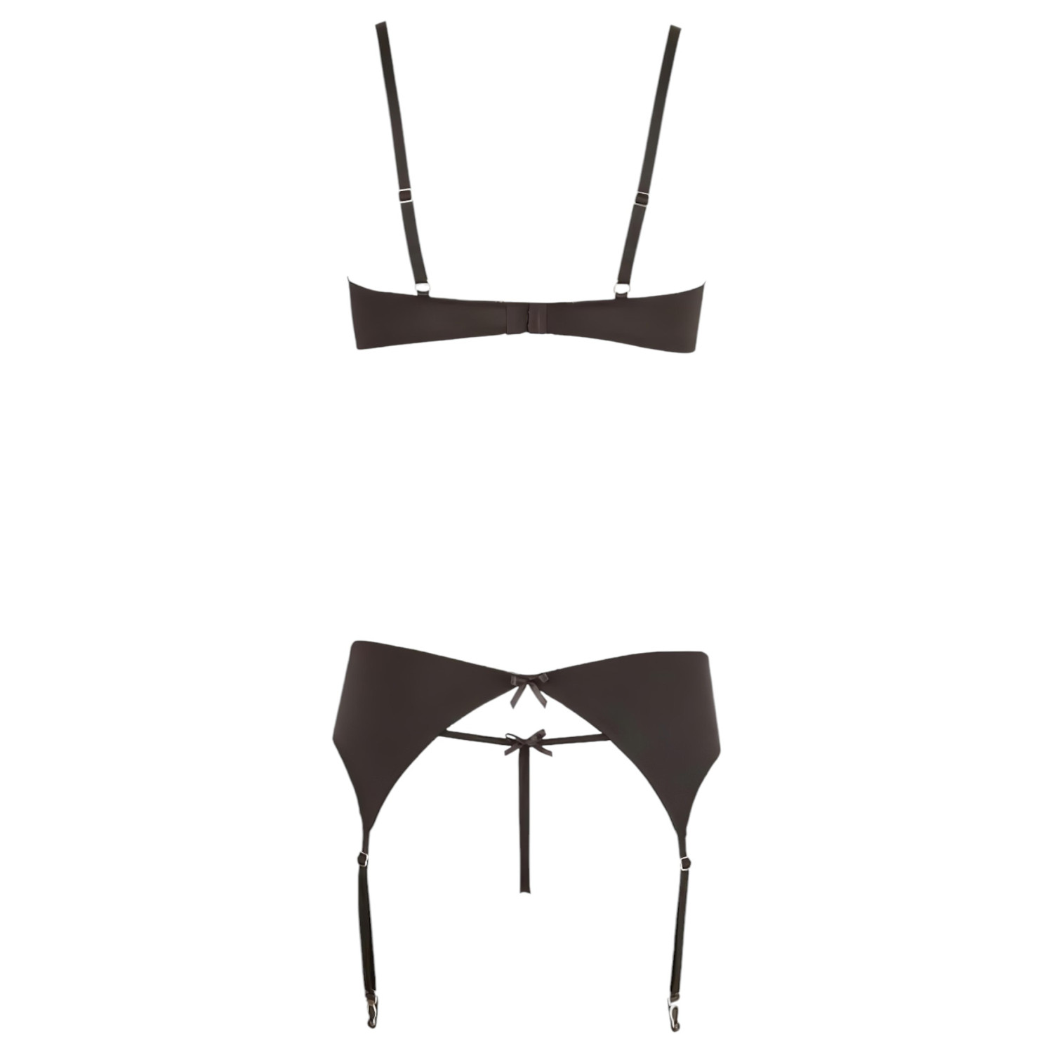 Φορέστε τον ανυψωτήρας στήθους με ρυθμιζόμενα λουριά, που αναδεικνύει και ανυψώνει το στήθος. Συμπληρώστε το σετ με το ανοιχτό στρινγκ και στερεώστε τη ζαρτιέρα με τις αγαπημένες σας κάλτσες. Θα νιώσετε αμέσως το ιδιαίτερο, αισθησιακό αποτέλεσμα.