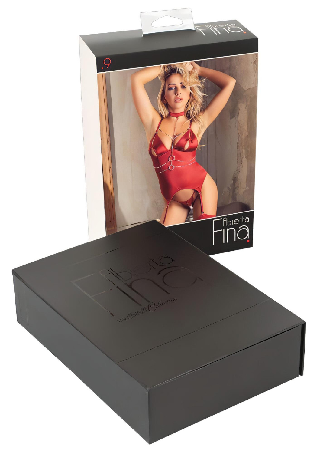 Εξαιρετικά εντυπωσιακό και σέξι σετ που θα σας μαγέψει σίγουρα - Abierta Fina γυαλιστερό τοπ με αλυσίδες και στρινγκ (κόκκινο)!