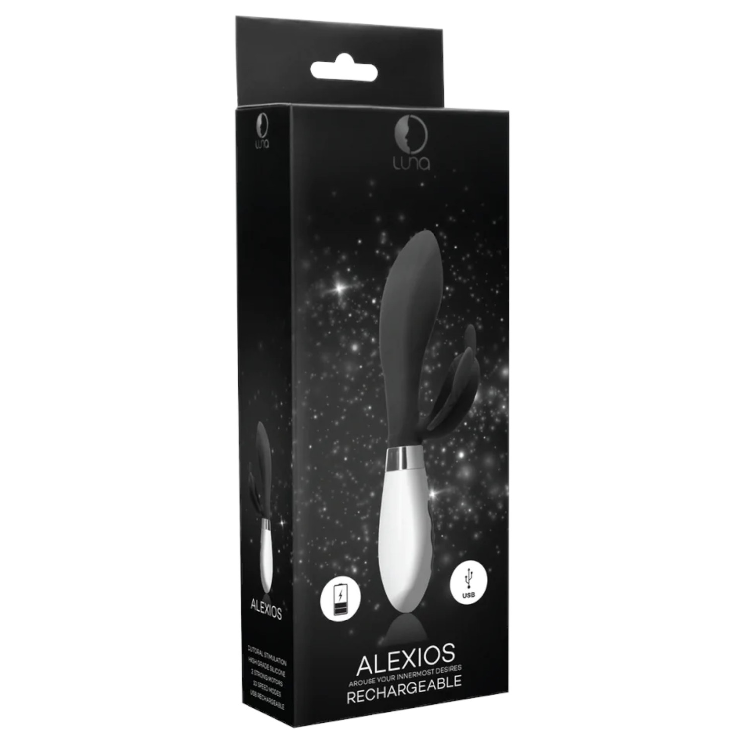 Alexios - Δονητής με πεταλούδα και κλειτοριδικό βραχίονα (μαύρο)