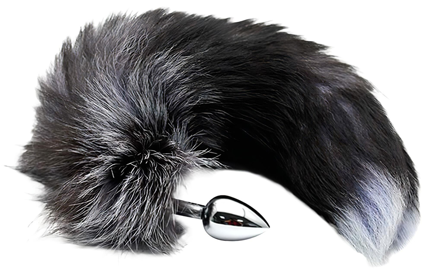 • Πρωκτική τάπα από κρύο μέταλλο που αγγίζει διεγείροντας εσωτερικά, με μακριά, ασημί-γκρίζα αλεπού-ουρά εξωτερικά, που είναι το τέλειο αξεσουάρ για παιχνίδια ρόλων!