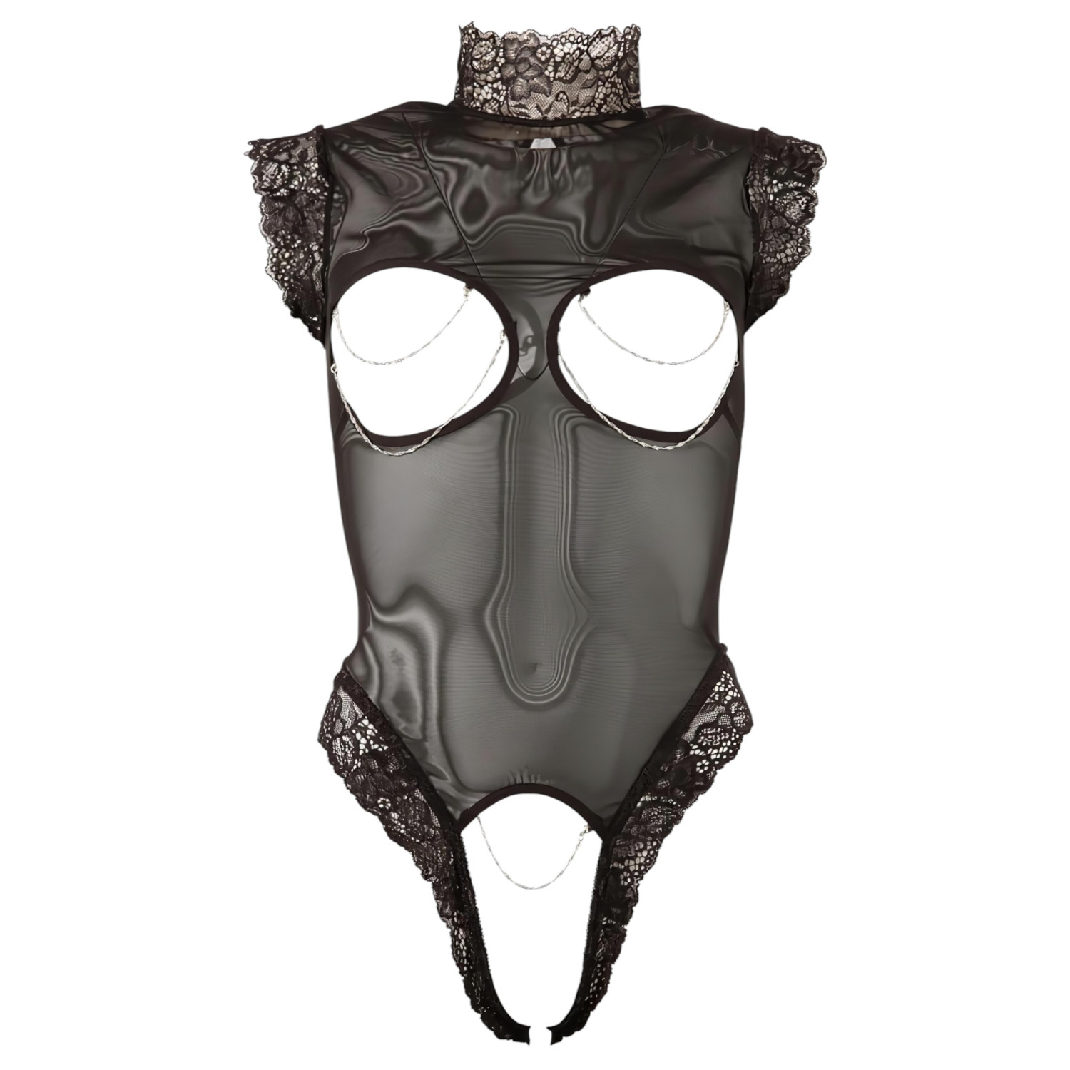 Αυτό το μοναδικό ανοιχτό κορμάκι είναι ταυτόχρονα κομψό και εκθαμβωτικά ερωτικό. Οι δαντελωτές λεπτομέρειες προσφέρουν φινετσάτη θηλυκότητα, ενώ το διαφανές ύφασμα και τα αποσπώμενα διακοσμητικά με αλυσίδα προσφέρουν μια αξέχαστη εμπειρία.