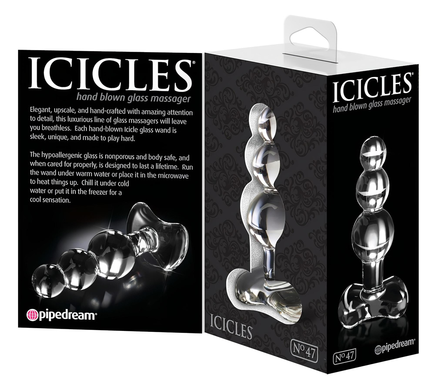 Κριτικές Icicles No. 47 - τριπλό μαργαριτάρι, γυάλινο πρωκτικό plug (διαφανές)