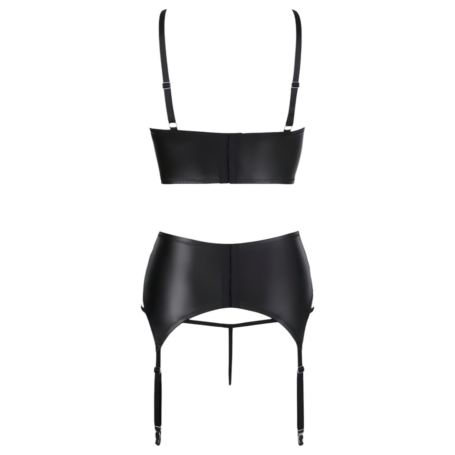Κριτικές Abierta Fina - αστραφτερό σετ εσωρούχων με λουριά και δαντέλα (μαύρο)