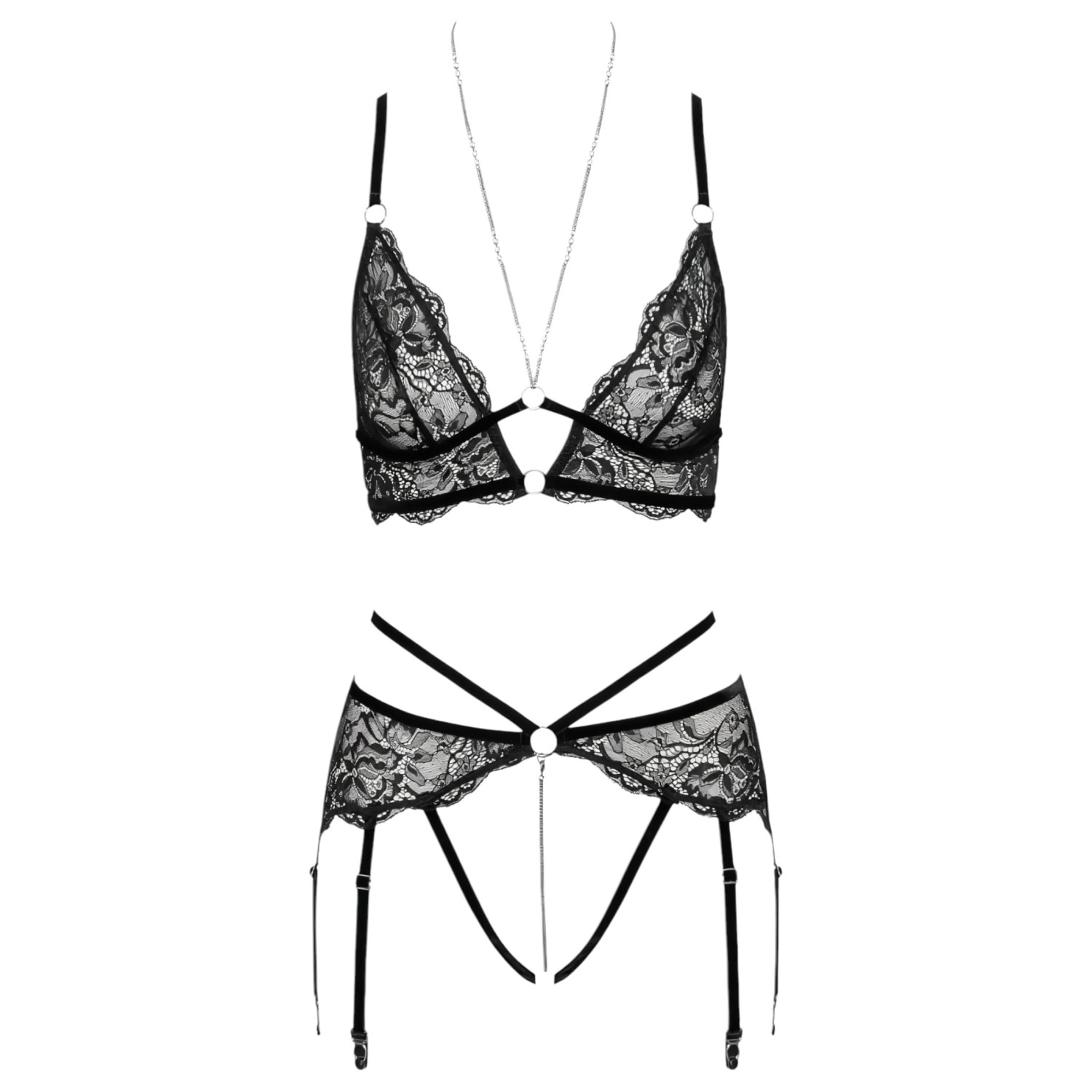 Κριτικές Abierta Fina - Ανοιχτό, Δαντελωτό Σετ Σουτιέν (Μαύρο) - L