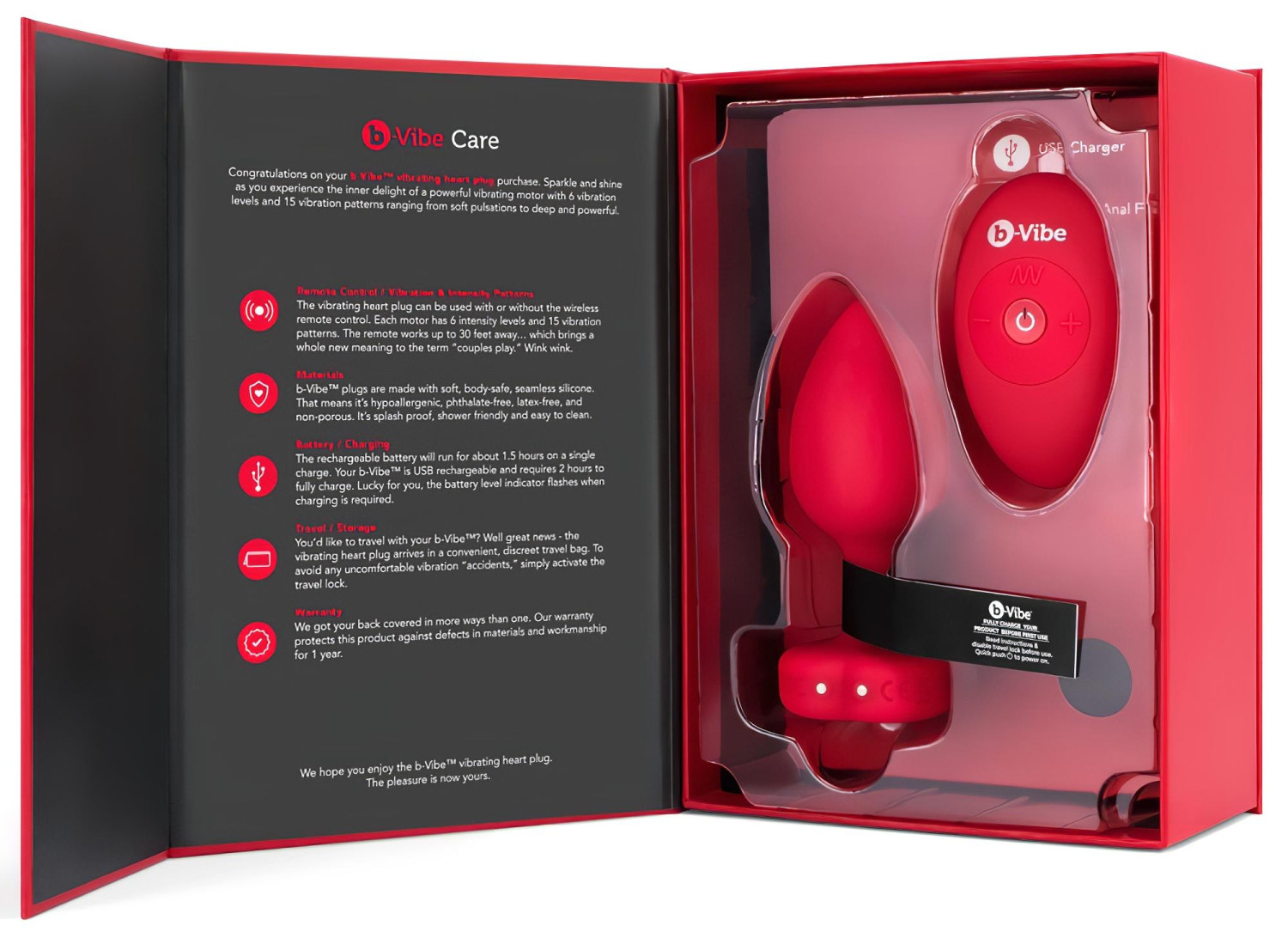 b-vibe heart - ασύρματος πρωκτικός διεγέρτης μπαταρίας (κόκκινο)
