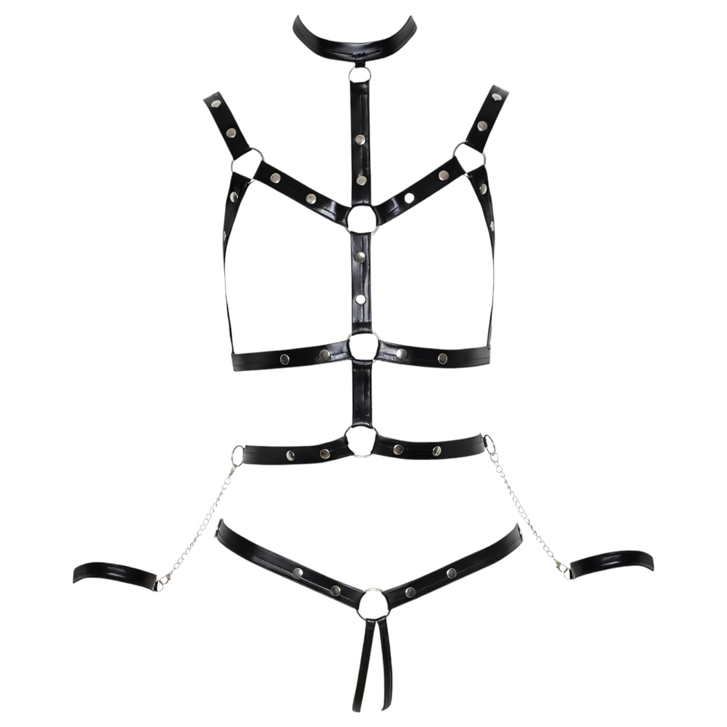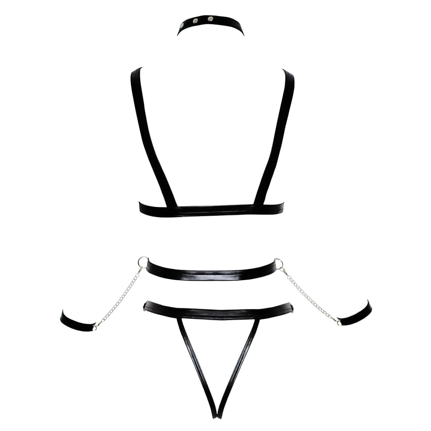 Ανακάλυψε τον κόσμο του πειρασμού και του παιχνιδιού με δεσίματα με αυτό το ιδιαίτερο, δύο κομματιών δερμάτινο body με στυλ ζώνης, διακοσμημένο με τρουκς.