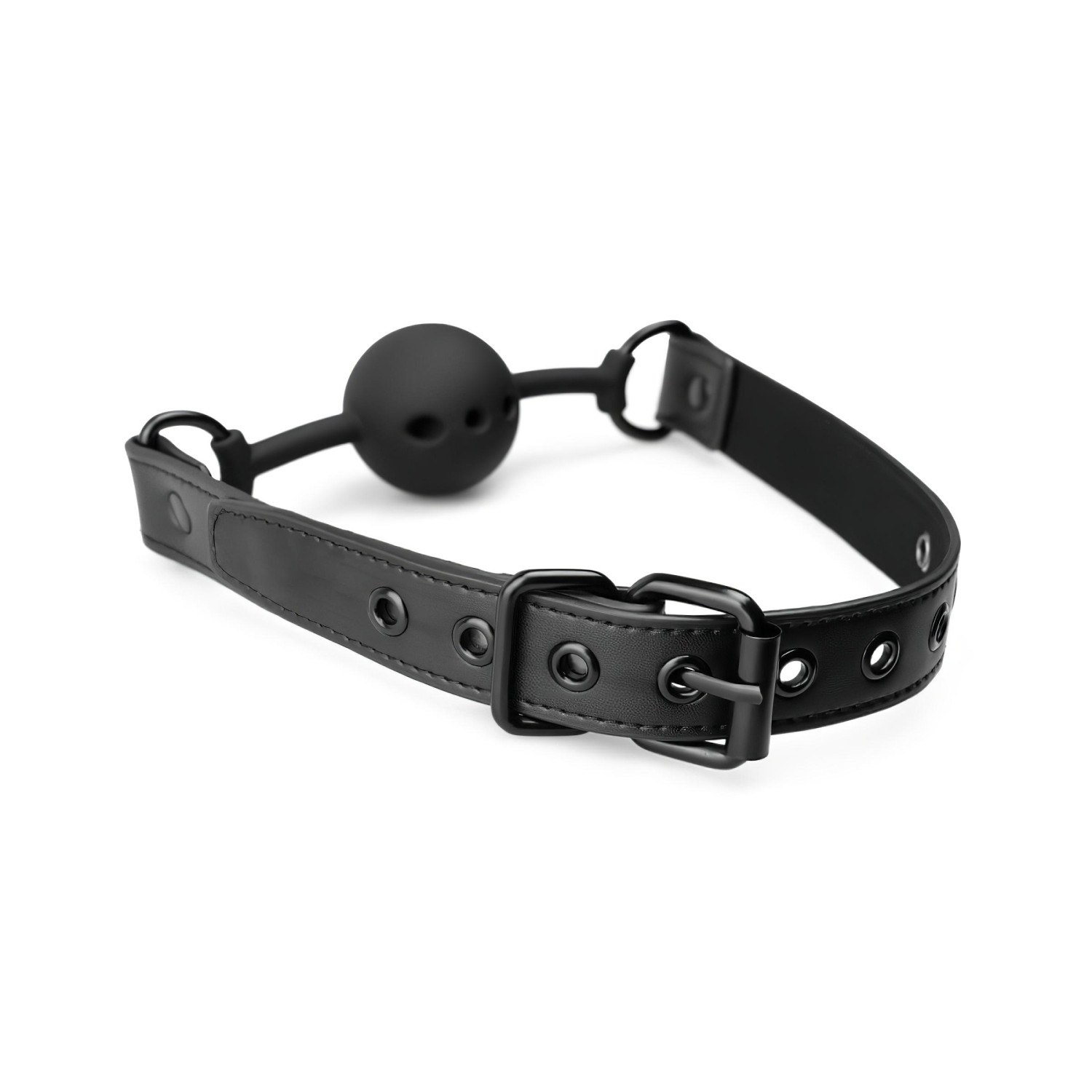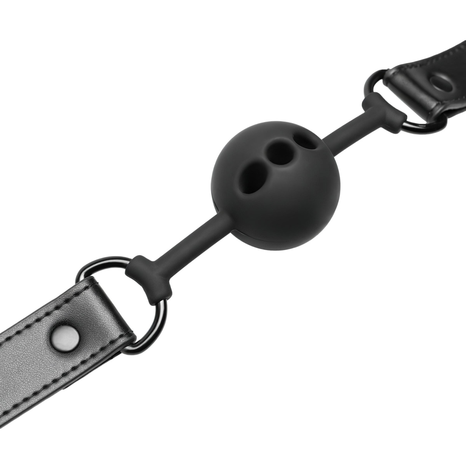 Ήσυχη υποταγή με ασφάλεια και απόλαυση. Η μπάλα για το στόμα με αεραγωγούς προσφέρει έντονη εμπειρία, ενώ παραμένει άνετη κι ασφαλής κατά τη διάρκεια του παιχνιδιού.