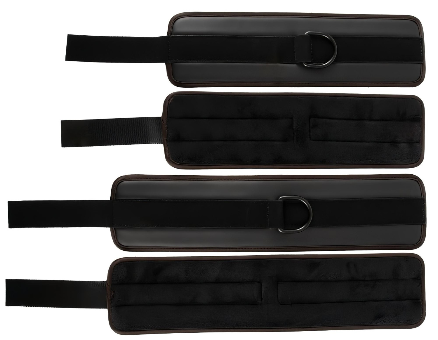 • 4 μανσέτες με βέλκρο και μεταλλικούς κρίκους D (για να δέσεις χέρια και πόδια)