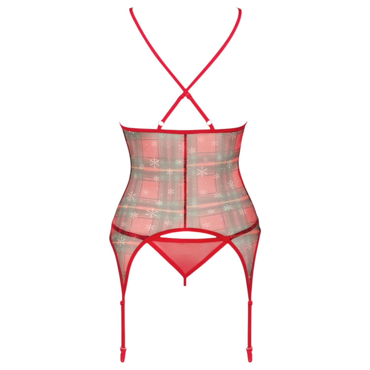 Το σετ Obsessive Jollymore είναι ένα σέξι εσώρουχο με γιορτινή διάθεση, φτιαγμένο από κόκκινο καρό ελαστικό ύφασμα και δαντελένιες λεπτομέρειες.