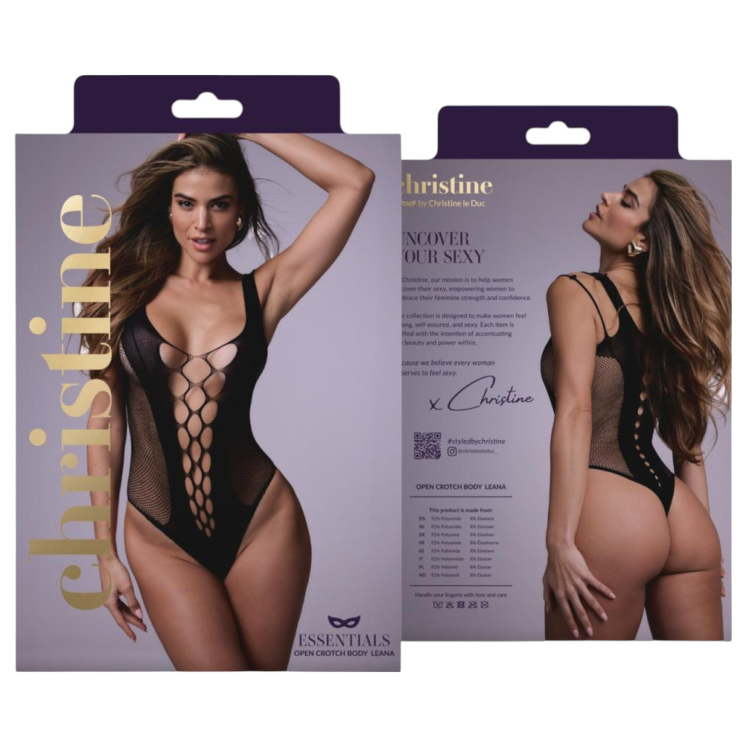 Το Leana σε μαύρο, με ανοιχτό καβάλο, είναι ένα bodystocking με αισθησιακή λεπτομέρεια στους ώμους και μοτίβο δίχτυ - ιδανικό αν ψάχνεις μια τολμηρή, απελευθερωμένη και ακαταμάχητη εμφάνιση.