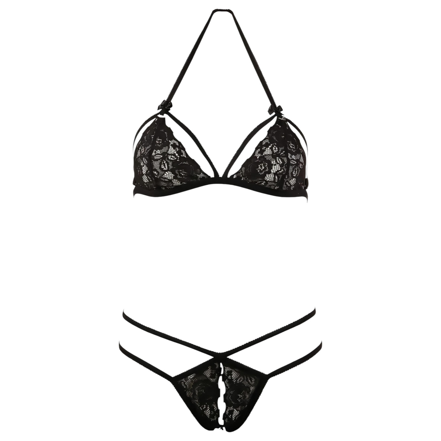 Cottelli - Ανοιχτό δαντελωτό σετ (μαύρο) - M