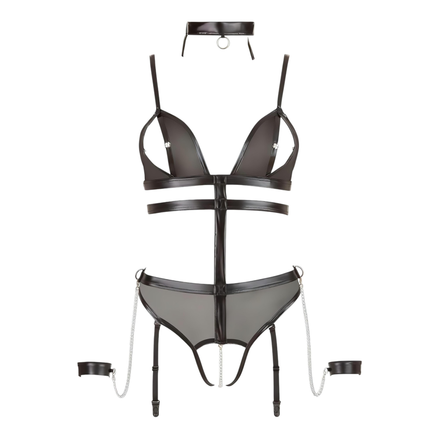 Cottelli Bondage - Ανοιχτό κορμάκι με ιμάντες και αλυσίδες (μαύρο)
