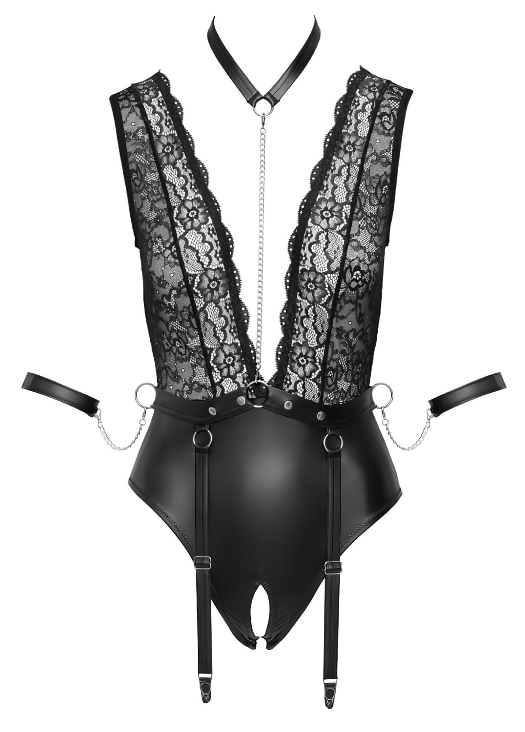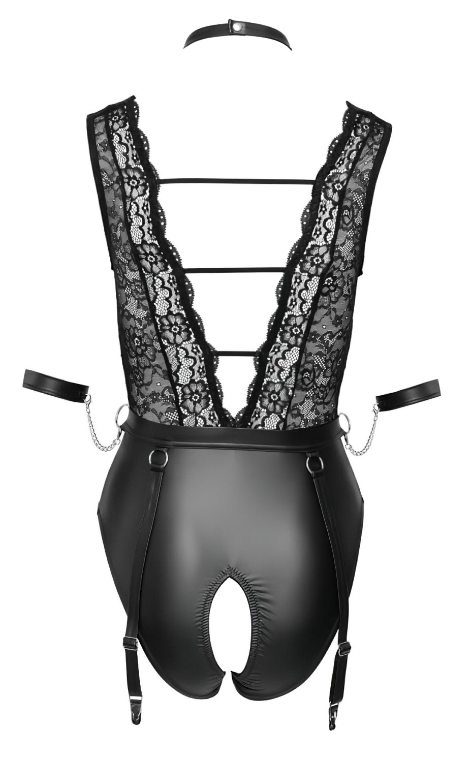 Κριτικές Cottelli Bondage - δαντελένιο κορμάκι με λαιμοδέτη (μαύρο)