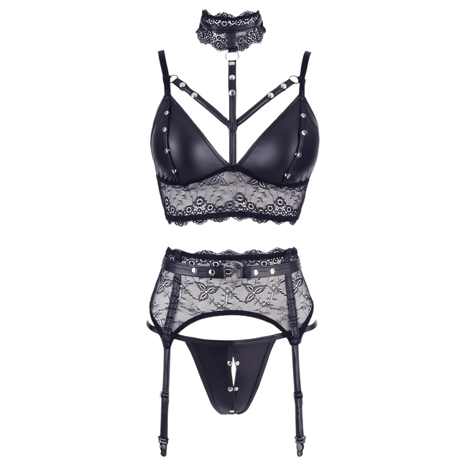 Κριτικές Cottelli Bondage - δαντελωτό σετ εσωρούχων με χειροπέδες (μαύρο) - M