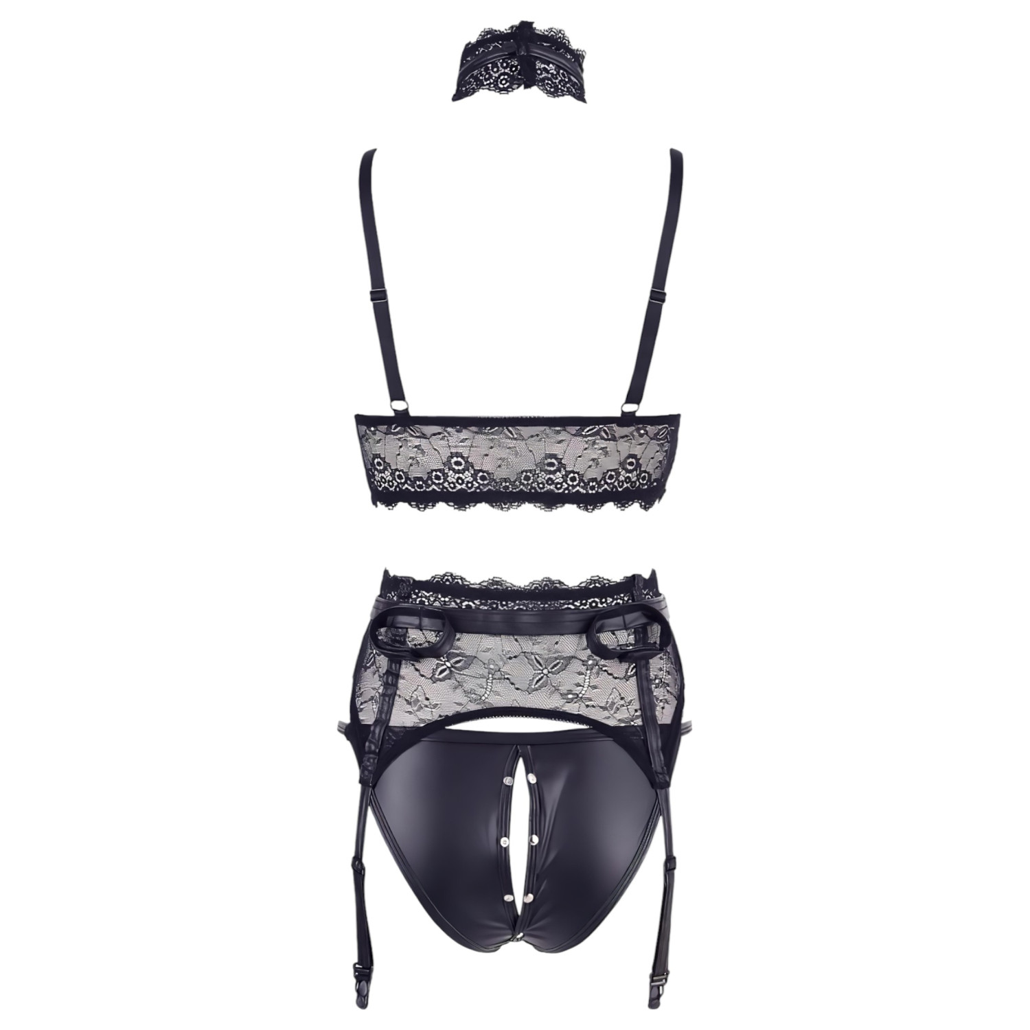 Cottelli Bondage - δαντελωτό σετ εσωρούχων με χειροπέδες (μαύρο) - M