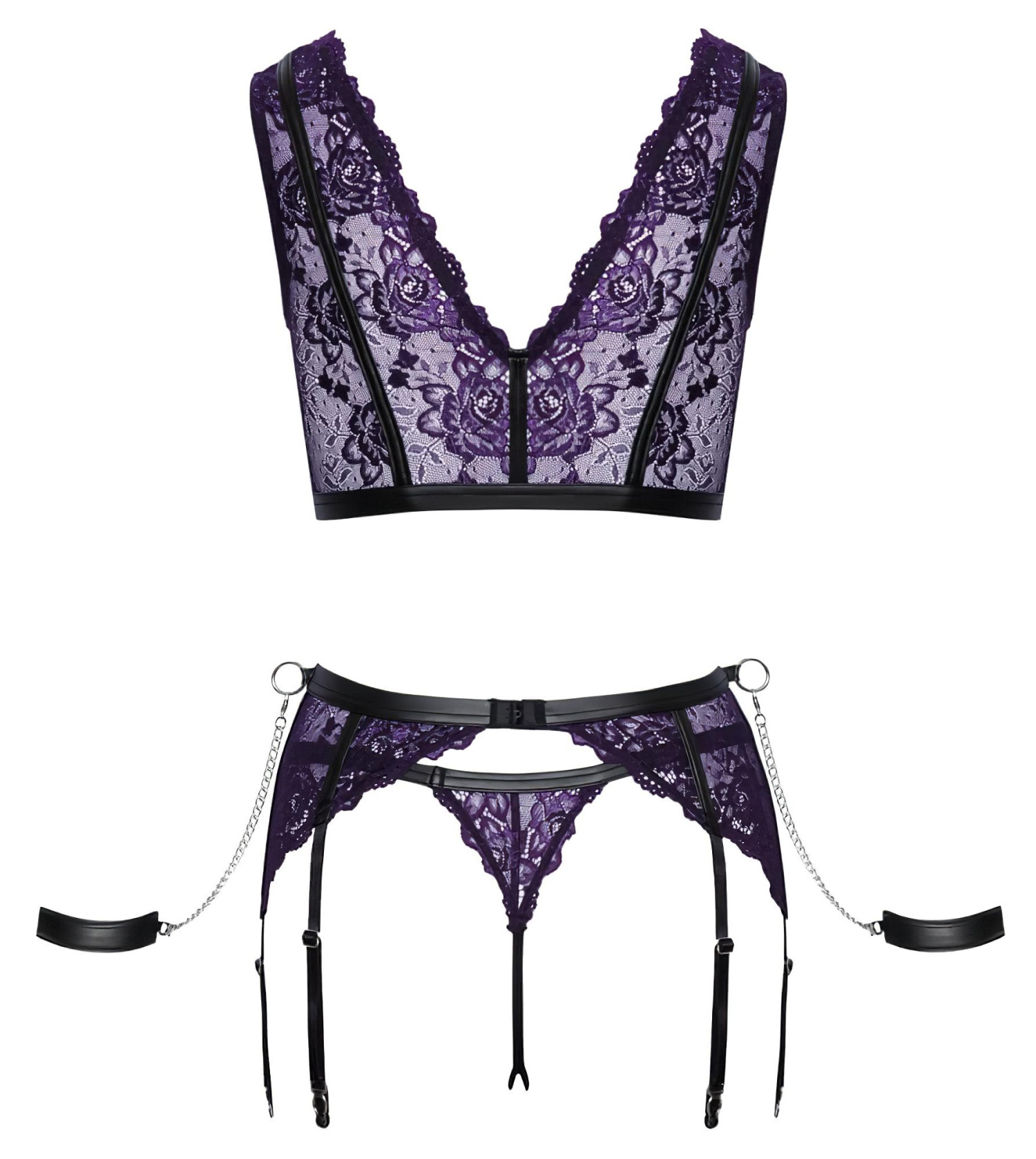 Σετ Εσωρούχων & Χειροπέδες Cottelli Bondage (μαύρο-μοβ) - M