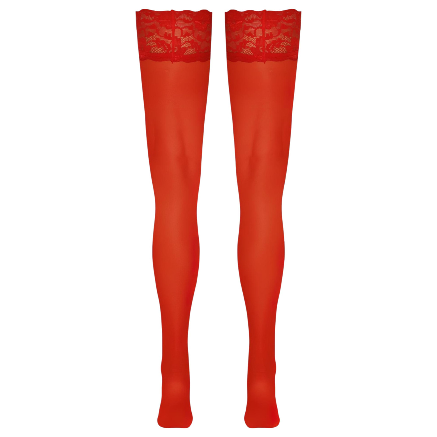 • 1 ζευγάρι κόκκινες κάλτσες με 9 εκ. δαντελένιο τελείωμα και ενίσχυση με σιλικόνη