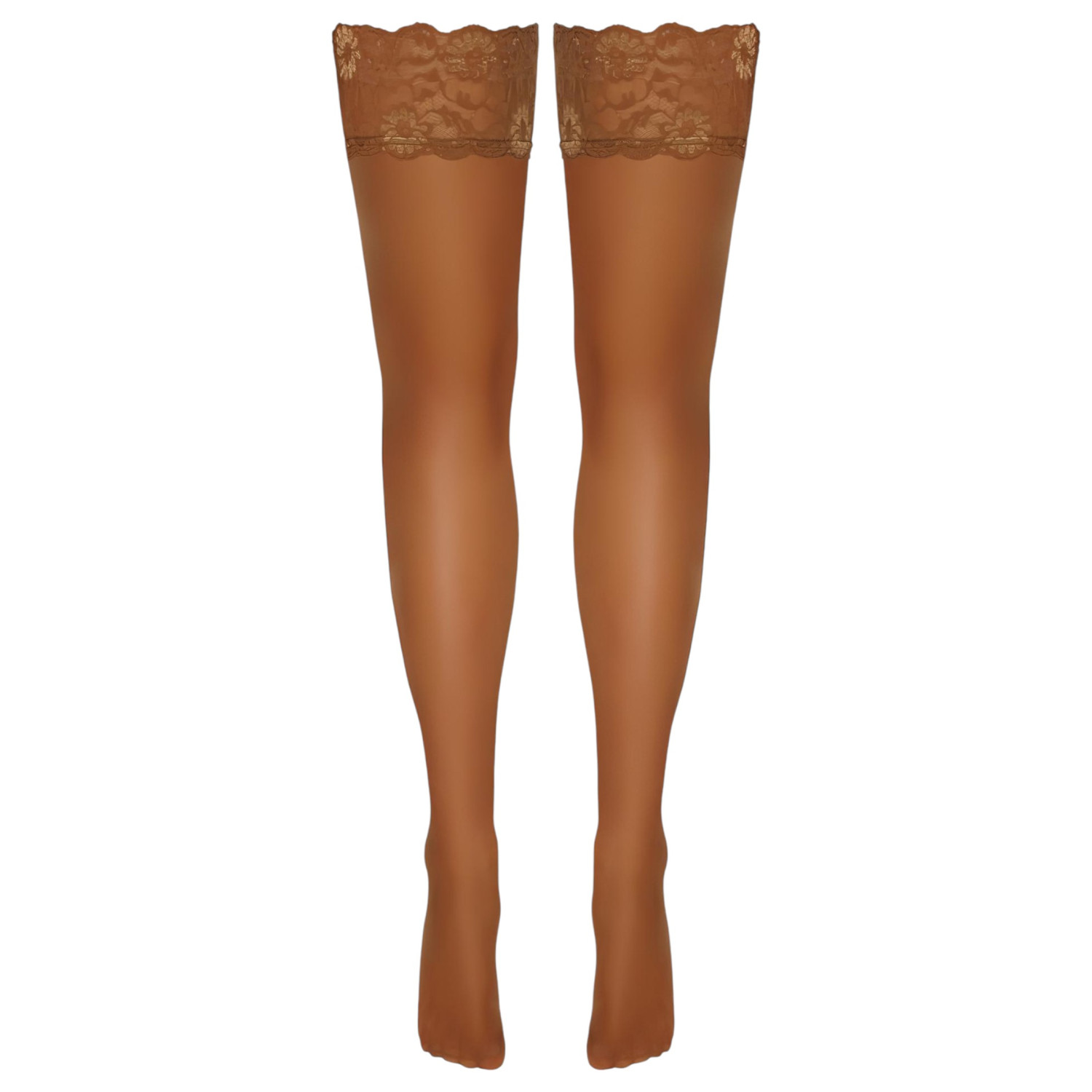 • 1 ζευγάρι φυσικές κάλτσες μέχρι τον μηρό με 9 εκ. δαντελένιο τελείωμα και σιλικονούχα ενίσχυση