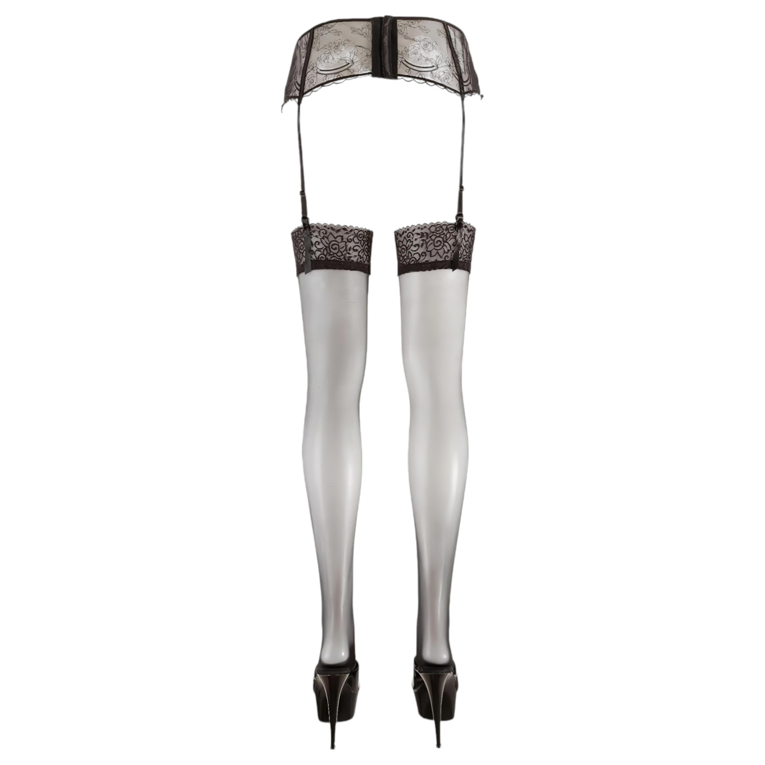 Διάφανες, ψηλές κάλτσες έως τον μηρό με φαρδιά, δαντελένια μπορντούρα.