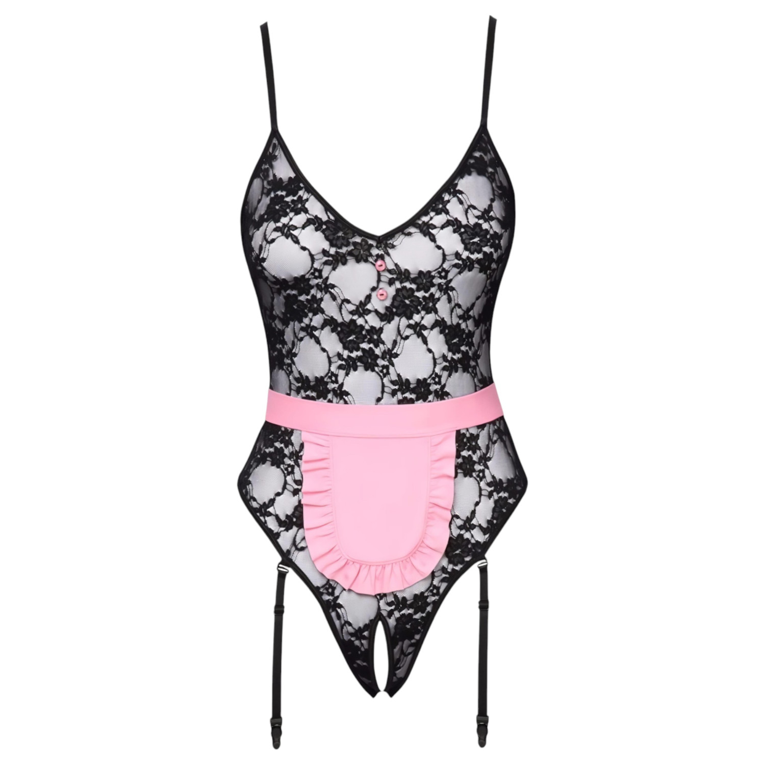Ολόσωμη στολή καμαριέρα φτιαγμένη ολόκληρη από δαντέλα, με ένα χαριτωμένο μικρό ποδιάκι που περιλαμβάνεται.