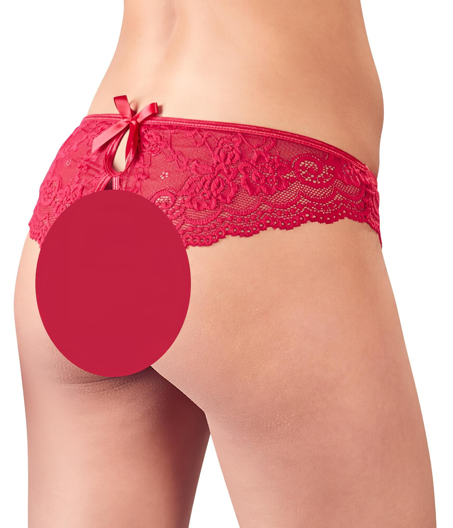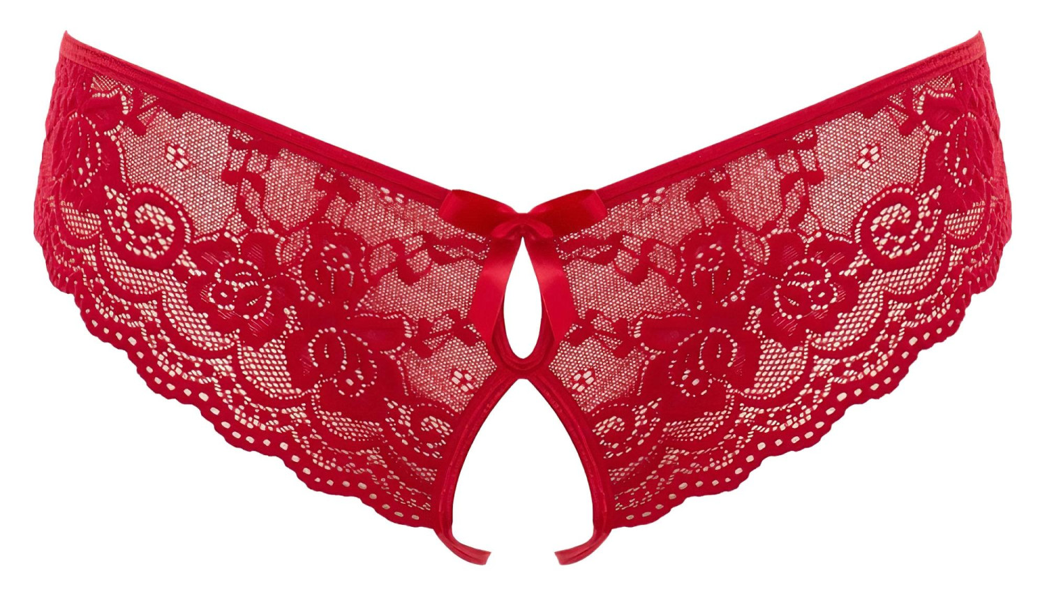 Καυτό, σε έντονο κόκκινο χρώμα, παιχνιδιάρικο γυναικείο εσώρουχο με χαριτωμένα φιογκάκια, τολμηρά ανοιχτό μπροστά για απόλυτα πικάντικη εμπειρία!