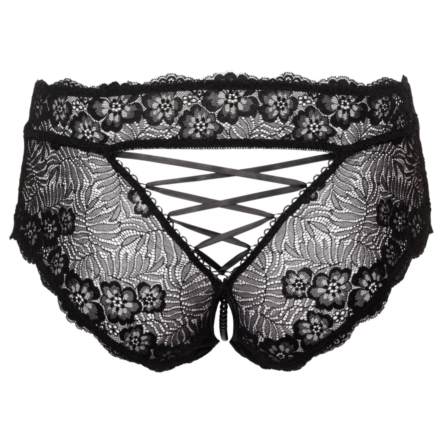 Το Cottelli Curves - ανοιχτό δαντελένιο εσώρουχο (μαύρο) είναι ένα εξαιρετικά σαγηνευτικό εσώρουχο από λεπτή δαντέλα με λουλουδάτο σχέδιο, του οποίου η ανοιχτή σχεδίαση και η διεγερτική αλυσίδα μαργαριταριών δημιουργούν άμεσα μια συναρπαστική ατμόσφαιρα.