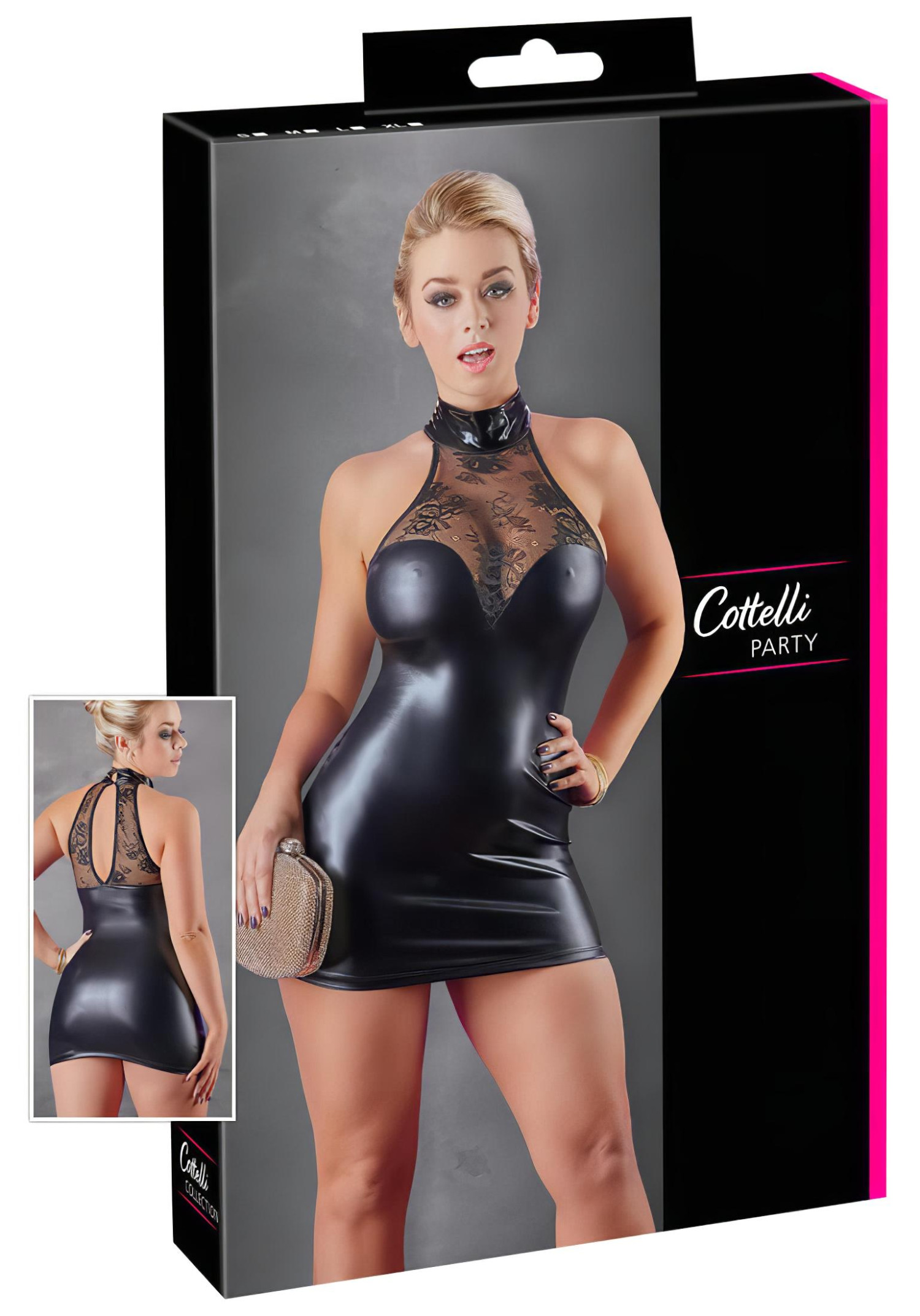 Cottelli - δαντελωτό γυαλιστερό φόρεμα με λαιμόκοψη (μαύρο) - XL