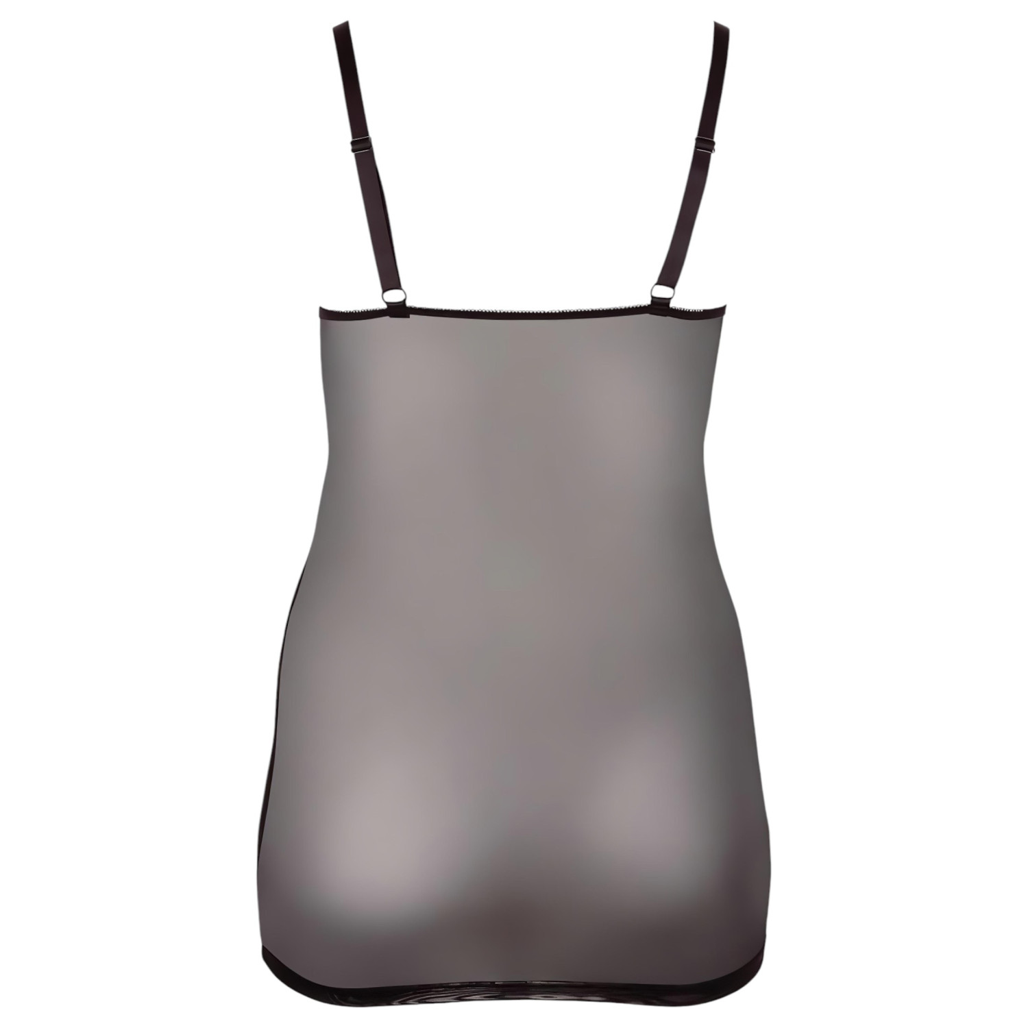 • 1 τεμάχιο μαύρο, διάφανο μίνι νυχτικό με δαντελένιες λεπτομέρειες.