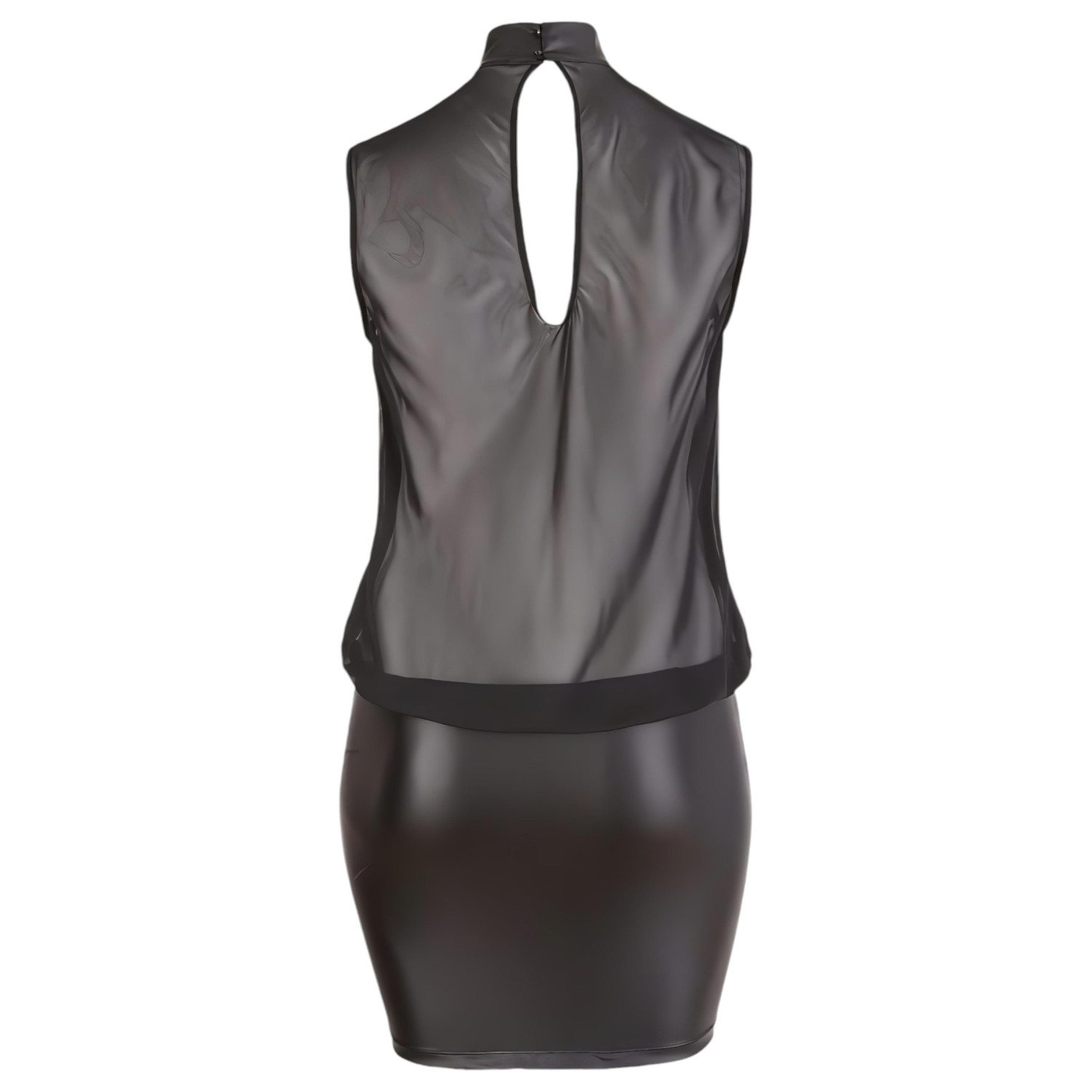 • 1 μαύρο μίνι φόρεμα με όρθιο γιακά και διάφανο επάνω μέρος