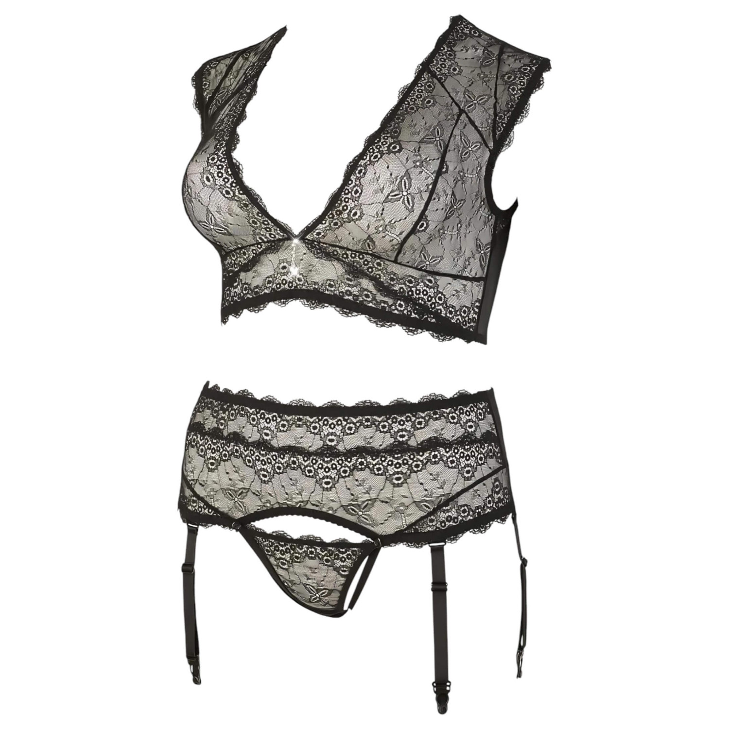 Κριτικές Cottelli Plus Size - Στράς και δαντέλα εσώρουχα σετ (μαύρο) - XL