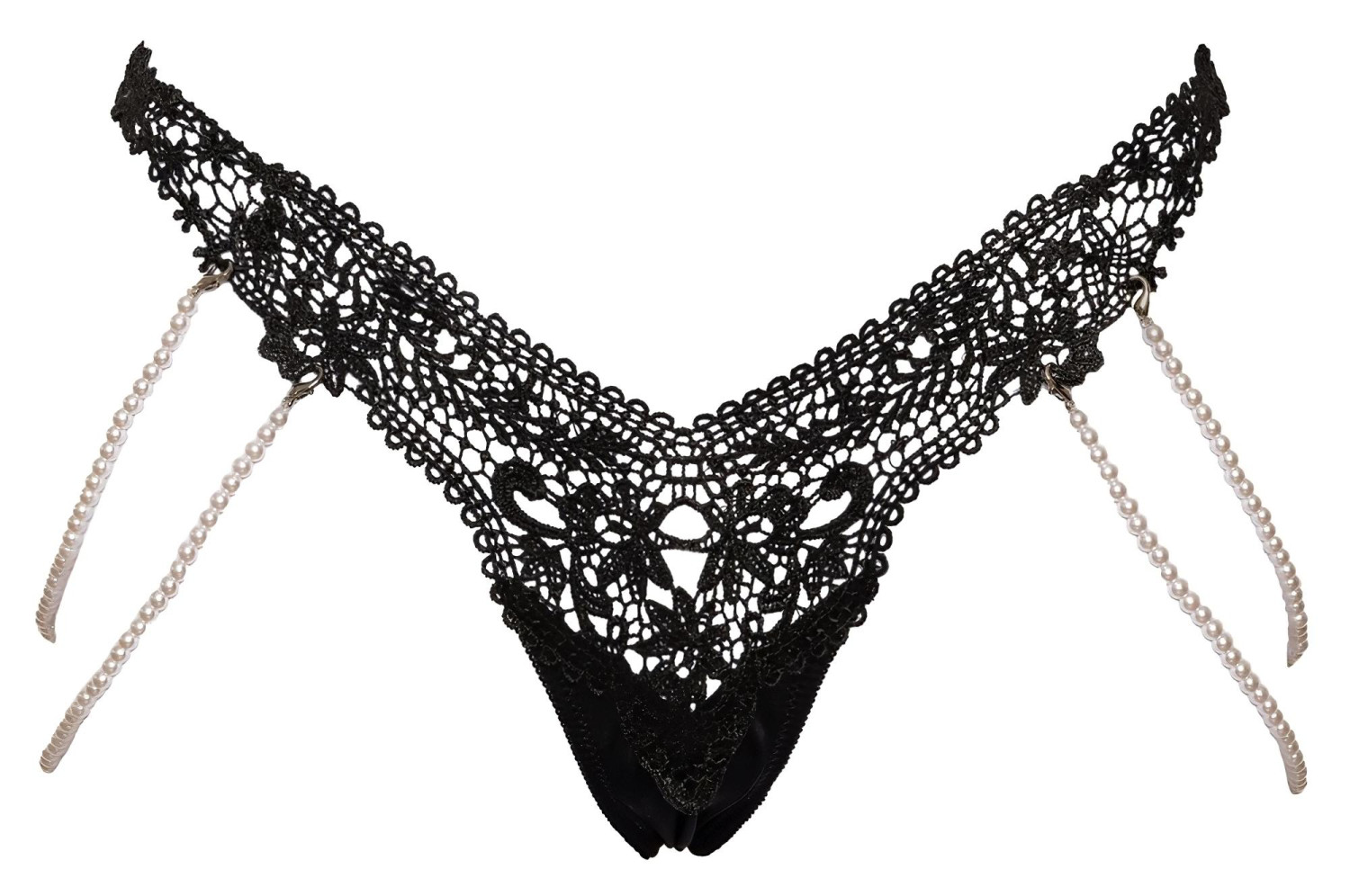 Υψηλής ποιότητας, κεντημένο, δαντελένιο στρινγκ με αποσπώμενες αλυσίδες με πέρλες από τη Cottelli - o πειρασμός σε άλλη διάσταση!
