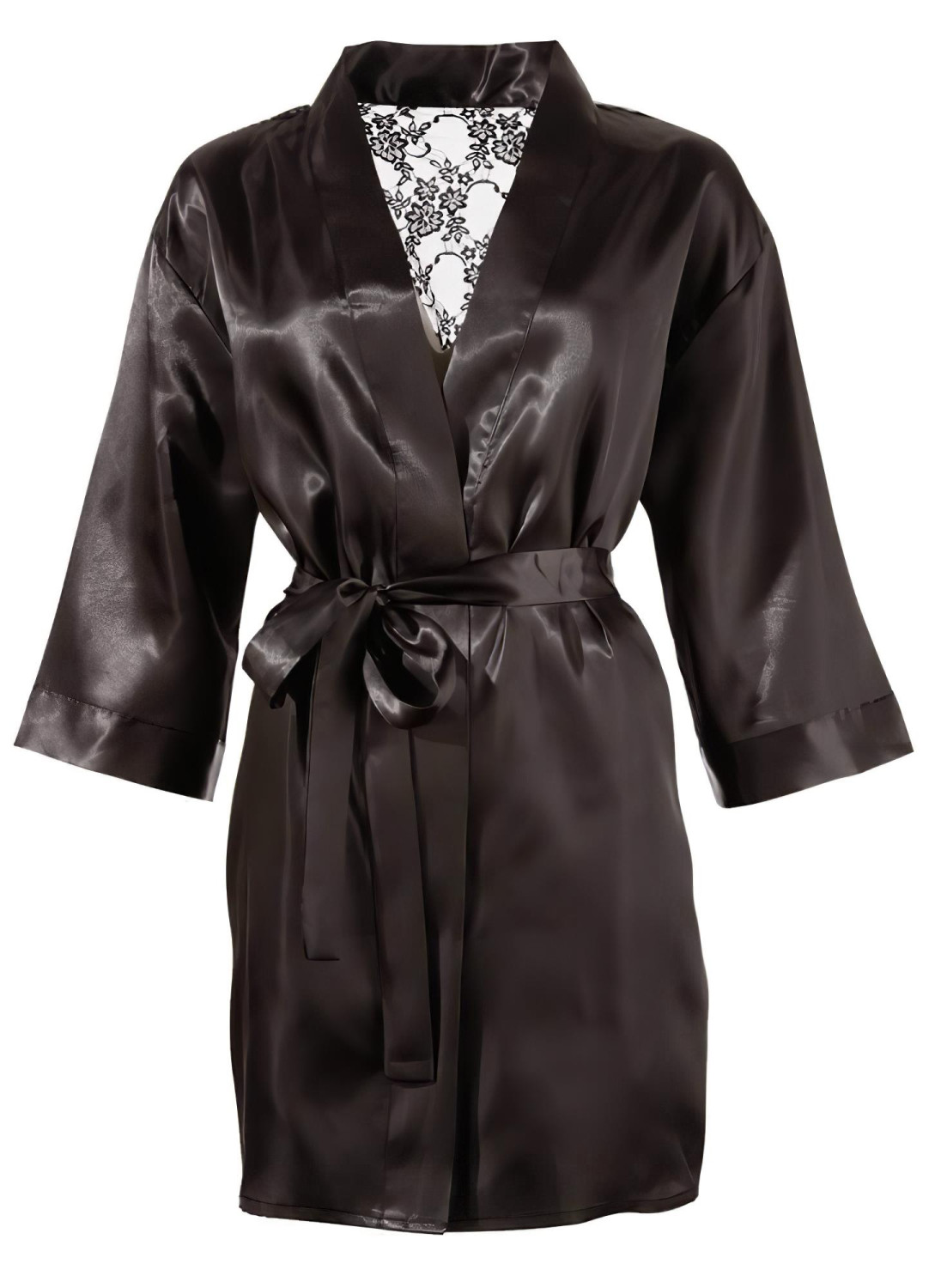 Cottelli - σατέν-δαντέλα, κοντό ρόμπα (μαύρο) - L/XL