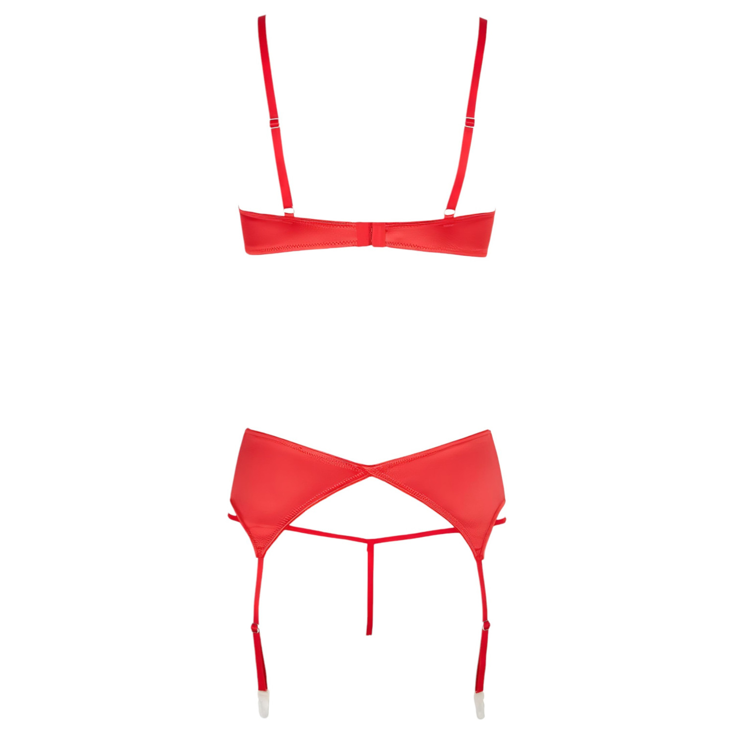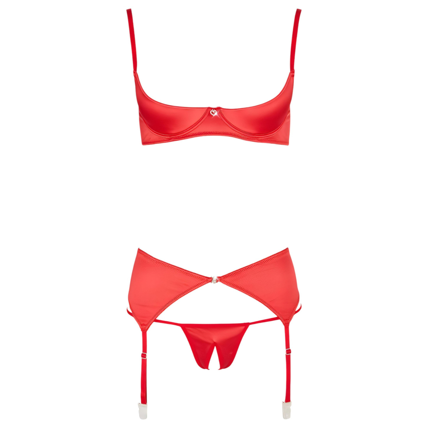 Τρισέτ κομμάτι σε καυτό κόκκινο, εντυπωσιακό εσώρουχο σετ με χαριτωμένο μεταλλικό καρδούλα με στρας ανάμεσα στο στήθος!