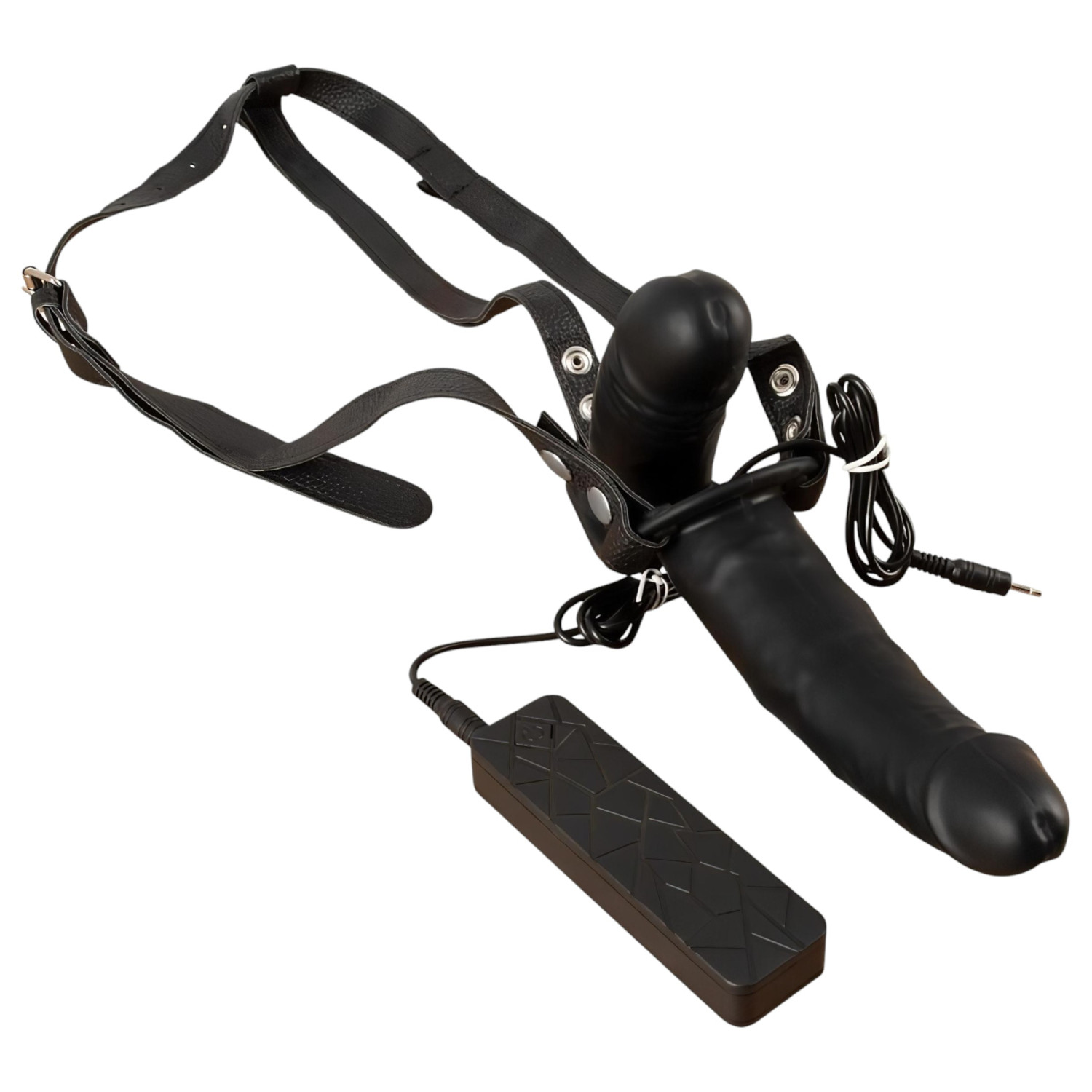 Διπλή απόλαυση με μία κίνηση - ζώνη με δονητές και αληθινά δερμάτινα λουριά!