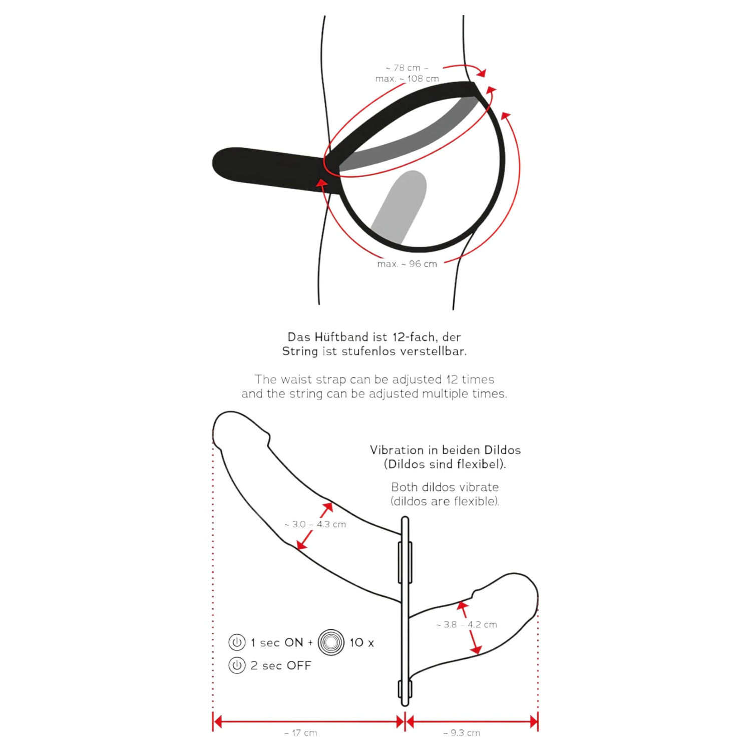 • Υλικά: ABS (χειριστήριο), Δέρμα (λουριά), Σιλικόνη (δονητές) - συμβατό με ευρωπαϊκές προδιαγραφές, χωρίς φθαλικές ενώσεις