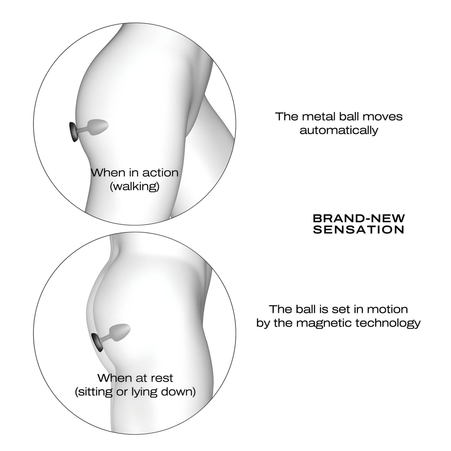 Τοποθέτησέ το απαλά και νιώσε τη λεπτή δόνηση από την εσωτερική μπίλια που κινείται με κάθε σου κίνηση. Όταν κάθεσαι ή ξαπλώνεις, η μαγνητική τεχνολογία ενεργοποιεί τη μπίλια για έξτρα απόλαυση.