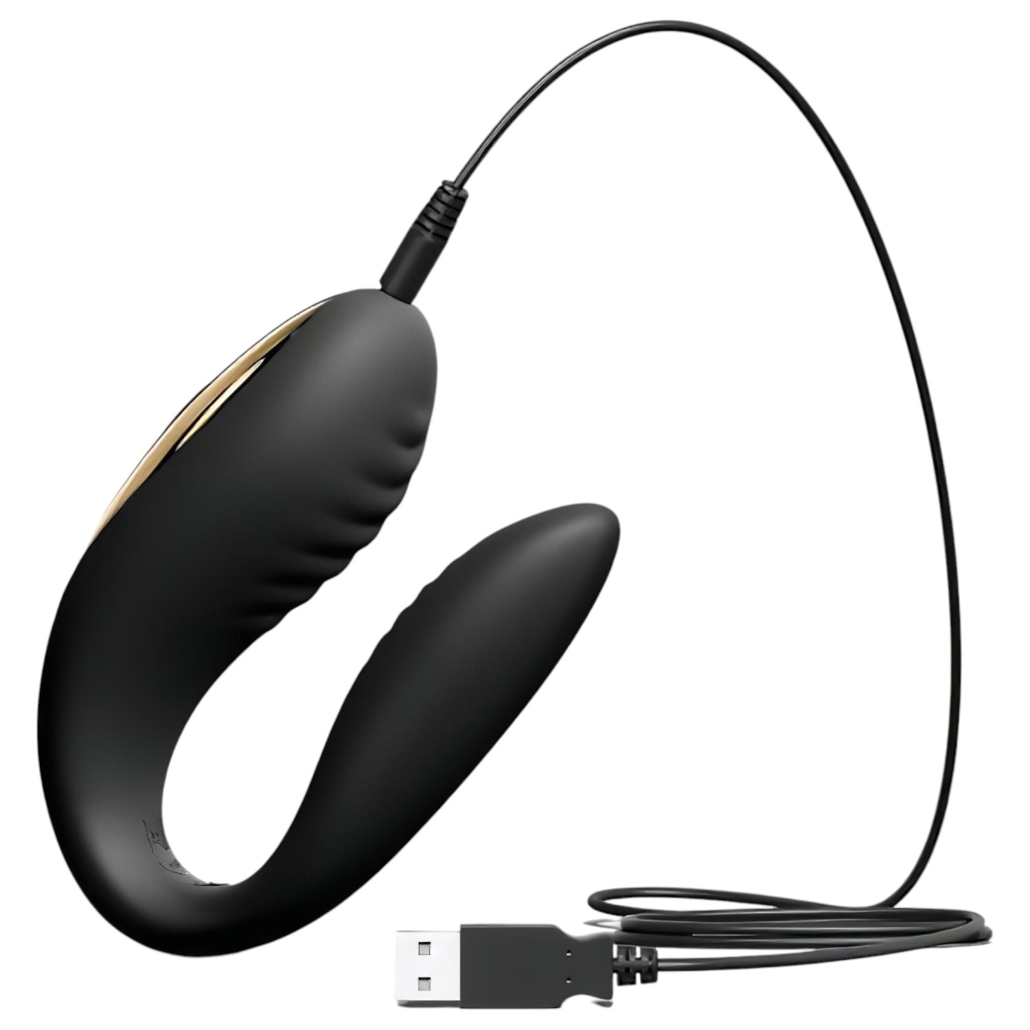 • Στο παχύτερο άκρο του C (στη χρυσή λεπτομέρεια) υπάρχει ένα κουμπί. Πατώντας το παρατεταμένα, το προϊόν ενεργοποιείται. Με επαναλαμβανόμενα πατήματα εναλλάσσεις τα προγράμματα δόνησης.