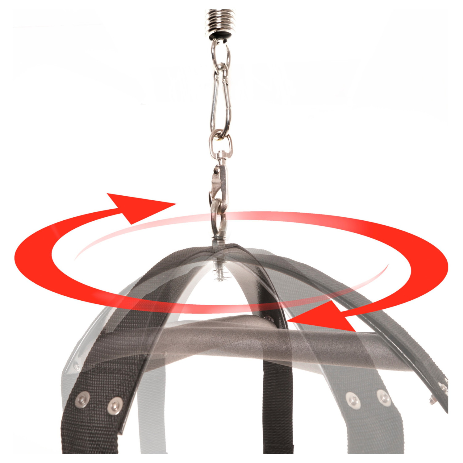 Στερέωσε την κούνια σε ένα σταθερό, κατάλληλο σημείο της οροφής ή στη δική της βάση. Ρύθμισε τα λουριά στο ύψος και την άνεση που σου αρέσει. Κάθισε, τοποθέτησε τα πόδια σου στα ειδικά λουριά, και απόλαυσε νέες εμπειρίες με κίνηση και περιστροφή!