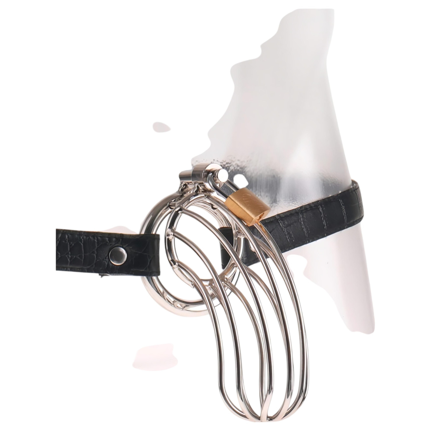 Το δυνατό ατσάλινο κλουβί περιβάλλει το πέος σου, ενώ αυτό, με ένταση και επιθυμία, επιθυμεί να απελευθερωθεί.