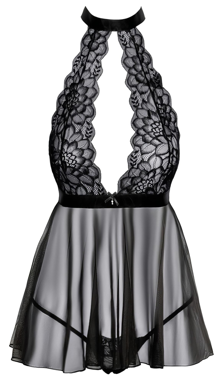 Αισθησιακό babydoll σετ με λαιμόκοψη από διάφανη δαντέλα - ιδανικό για να νιώσεις πραγματικά θηλυκή και σαγηνευτική!