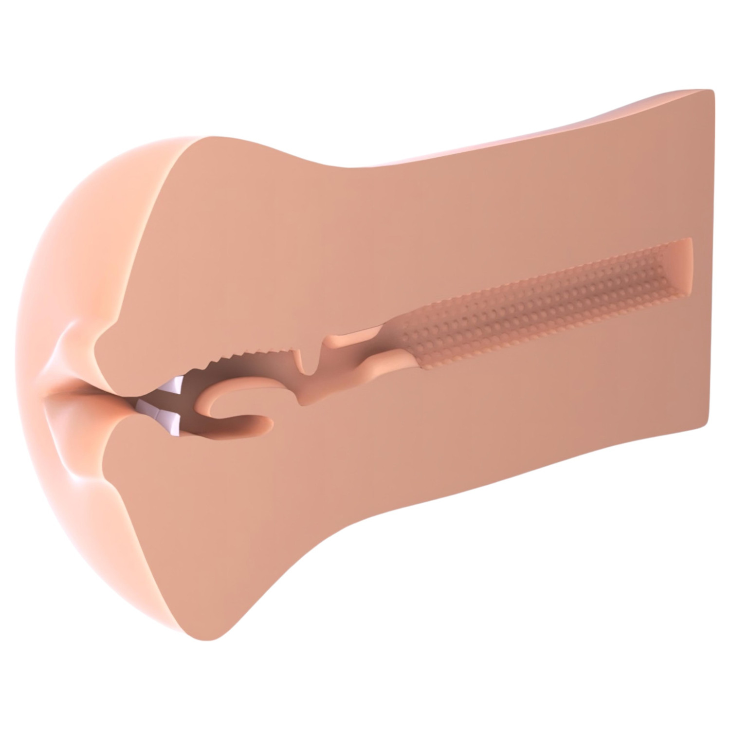 • Το ρεαλιστικό υλικό επιτρέπει άνετη διείσδυση. Η εσωτερική του υφή δίνει αίσθηση αυθεντικού λαιμού, με μαλακές πτυχώσεις στην είσοδο και πιο στενή, πιεστική συνέχεια
