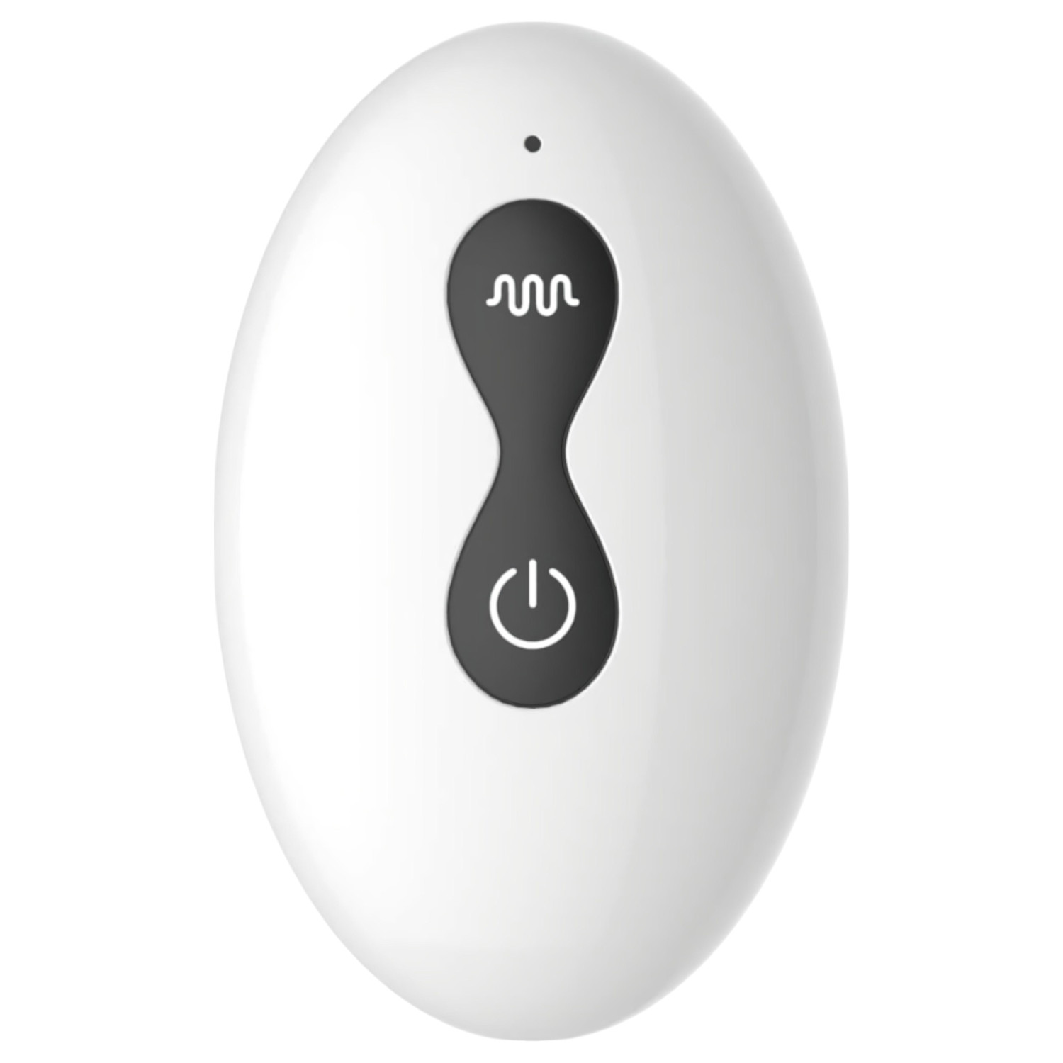 Όταν η συσκευή βρίσκεται στη βασική ρύθμιση, μπορεί να ελεγχθεί και από το τηλεχειριστήριο. Με το κουμπί με το κυμματάκι ρυθμίζεις τη δόνηση, με το άλλο τη στροφή. Με παρατεταμένο πάτημα σταματάς τις λειτουργίες. Για πλήρη απενεργοποίηση, κράτα πατημένο το κουμπί on/off στη συσκευή.