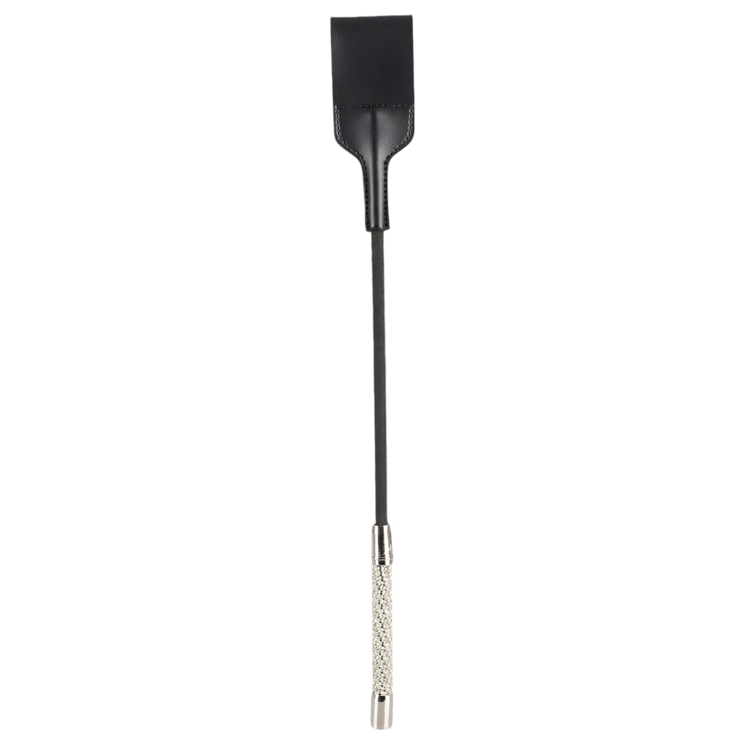 Ένα ιδιαίτερα ανθεκτικό και έντονο, διπλής στρώσης δερμάτινο εργαλείο με άκρη, με λαβή διακοσμημένη ολόκληρη με λευκές, λαμπερές στρας - σαν πραγματικό κόσμημα.