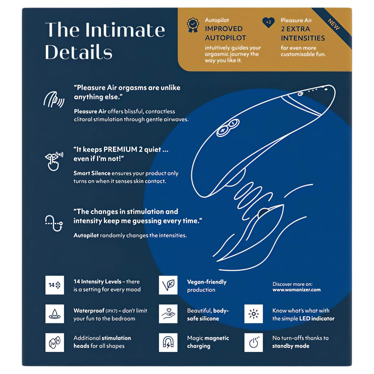 Womanizer Premium 2 - Λουξ κλειτοριδικός διεγέρτης, με ανέπαφα κύματα αέρα για εγγυημένο οργασμό!