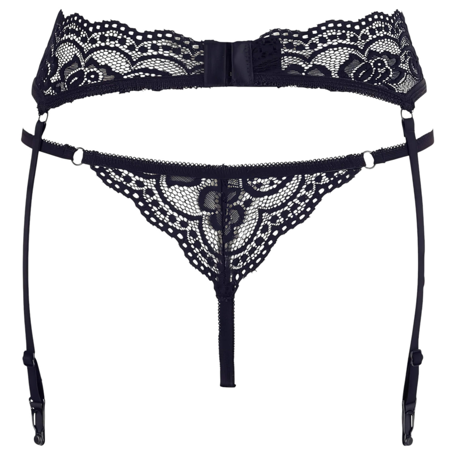 Cottelli - δαντελένια ζαρτιέρα και στρινγκ (μαύρο)