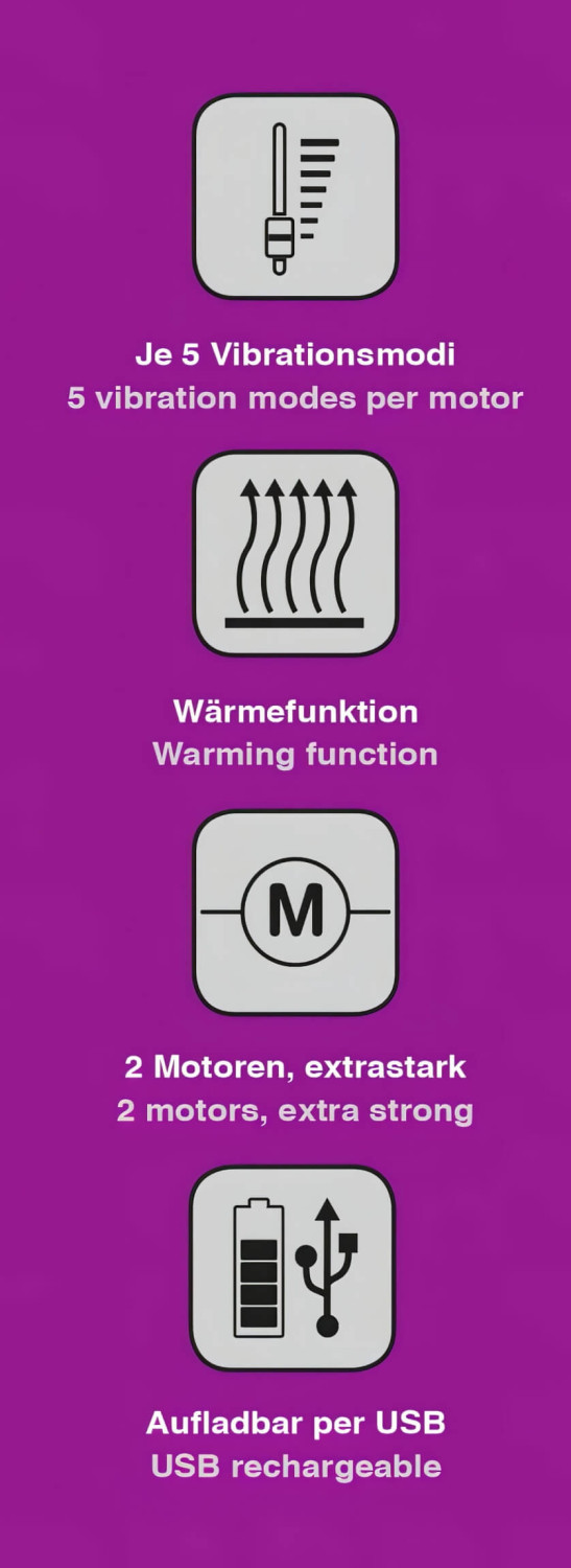 • 5 διαφορετικές λειτουργίες δόνησης με δύο ανεξάρτητα μοτέρ
